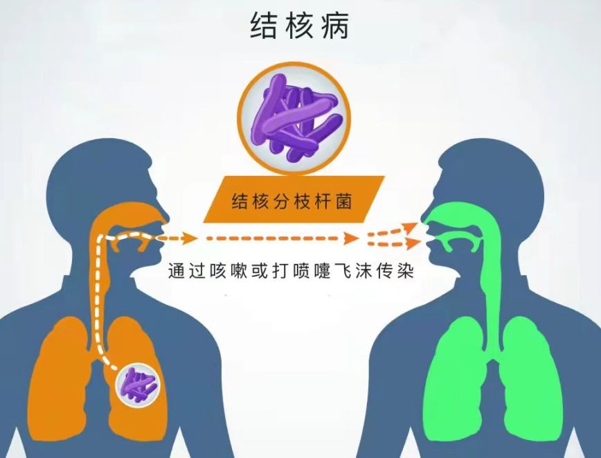 肺结核患者在咳嗽、打喷嚏、大声说话时,会把带有结核菌的飞沫播散到空气中,周围人群吸入带有结核菌的飞沫即可能受到传染。健康人可能通过吸入传染性肺结核患者喷出的飞沫而被感染。但是,一般人感染结核菌后不会发病,只有身体抵抗力低的时候才会发病。感染结核菌的人群一生中发生结核病的概率约为10%。感染结核菌但不发病的人,不会传染他人。