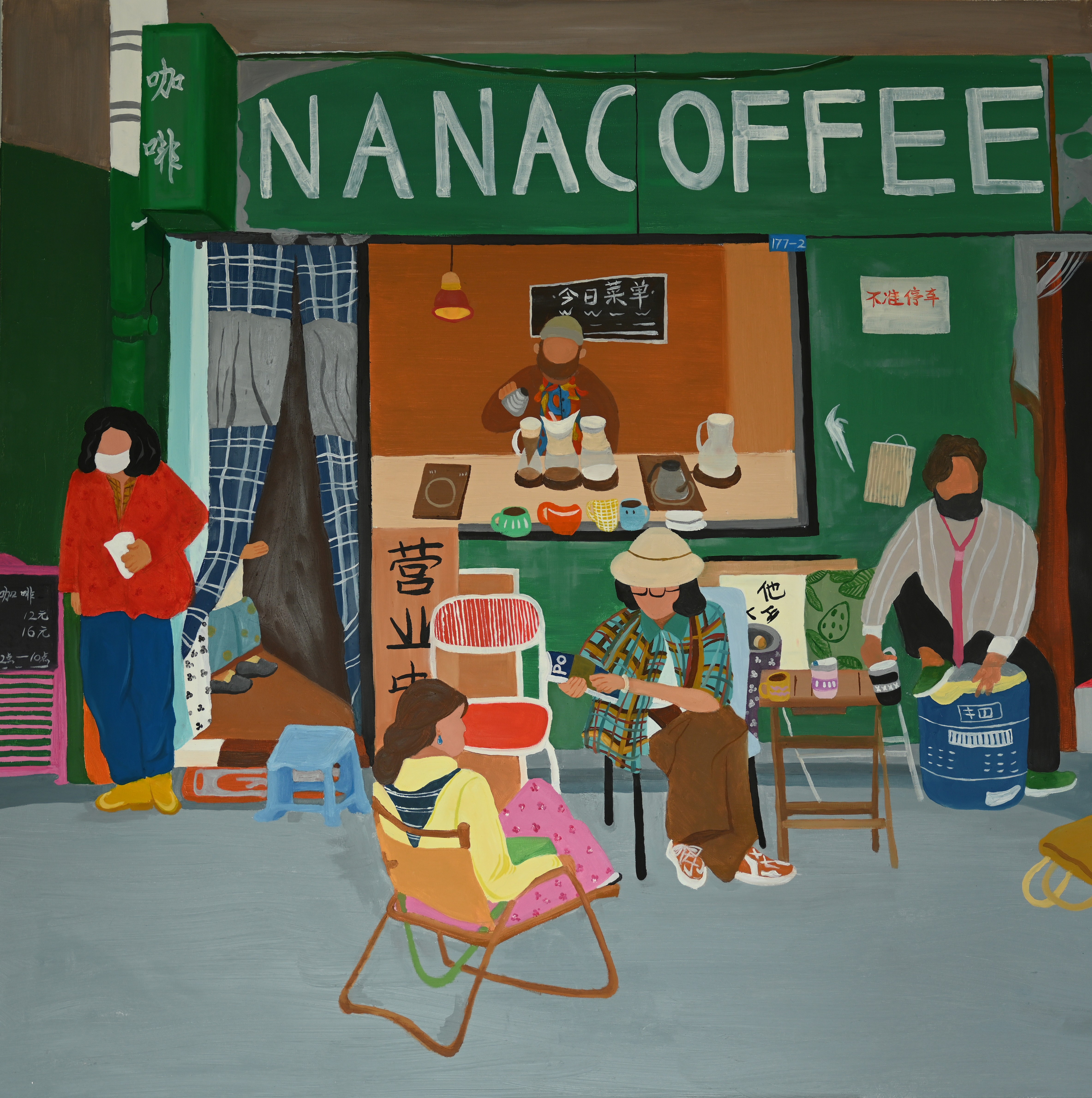 绘画2104班 符东琼 《逸咖时光》 120×120cm 指导教师:刘斌、程宣睿