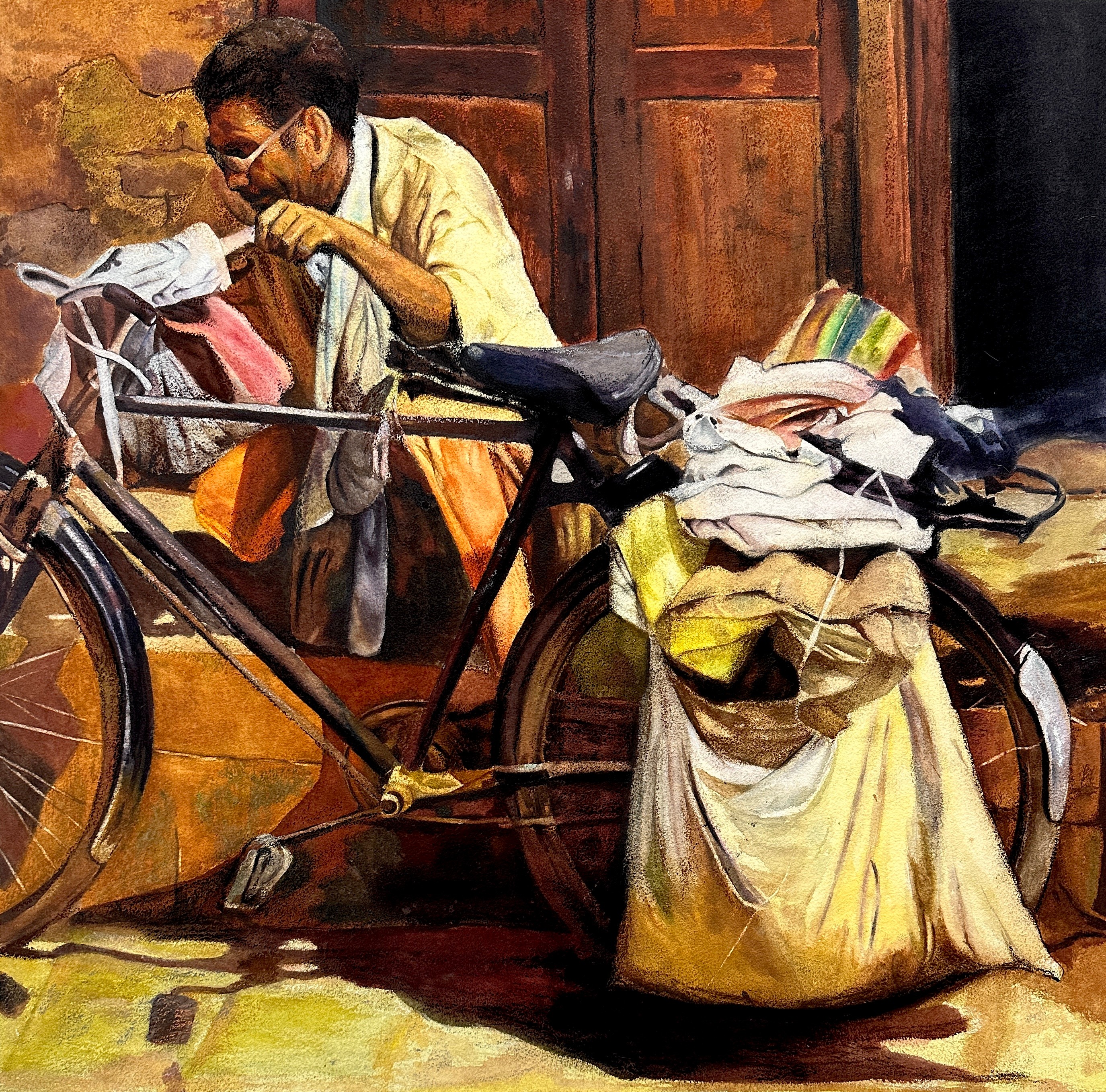 陈贾菲 《外卖小哥》 78×78cm 指导教师:刘广滨、陈亚宗