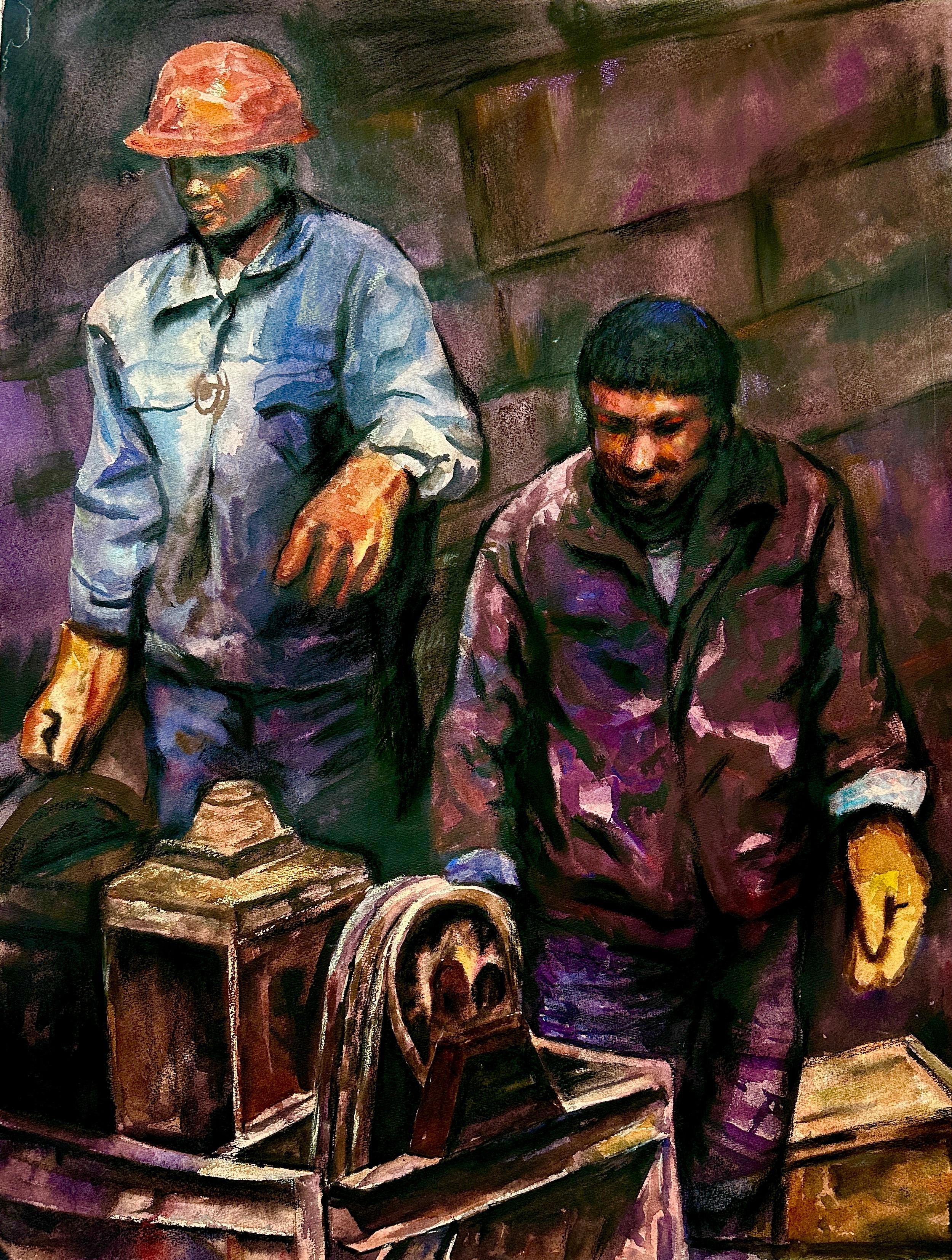 范宝怡 《“画说”工务人》 53x76cm 指导教师:刘广滨、陈亚宗
