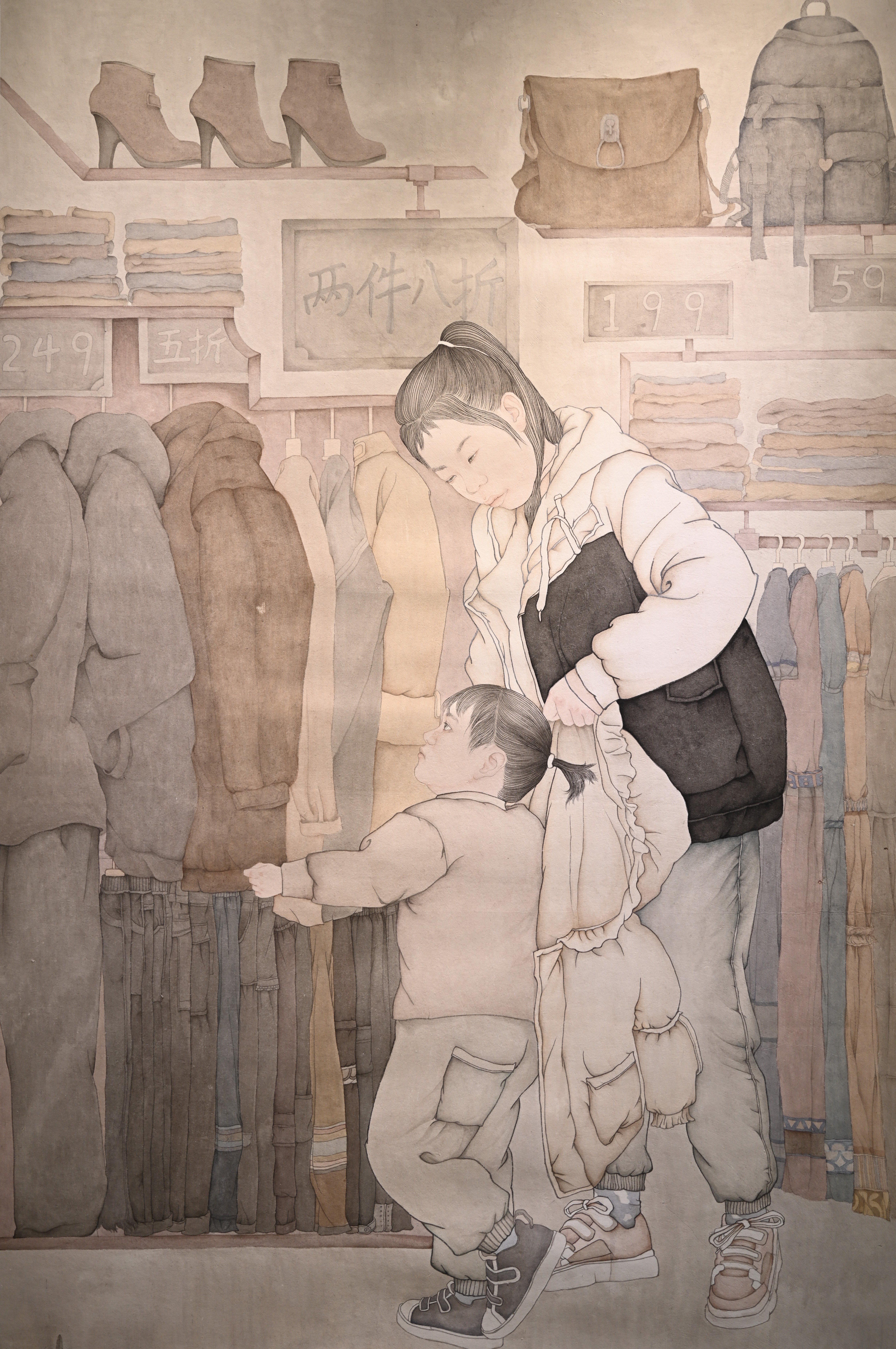 绘画2102班 梁君  《服装店母女》  115×165cm  指导教师:陈建江
