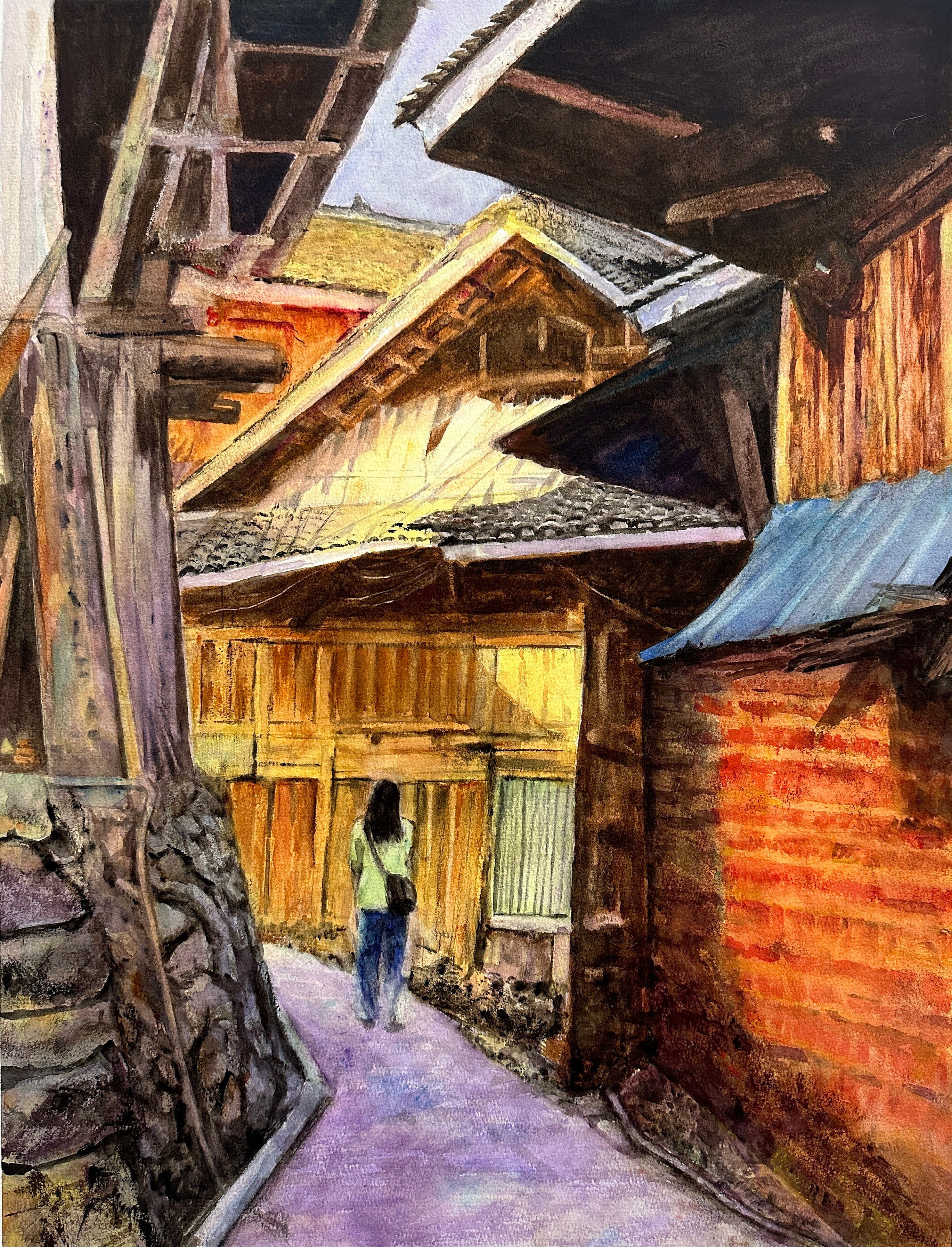 三等奖 周叶 《老街》 54x78cm 指导教师:刘广滨、陈亚宗