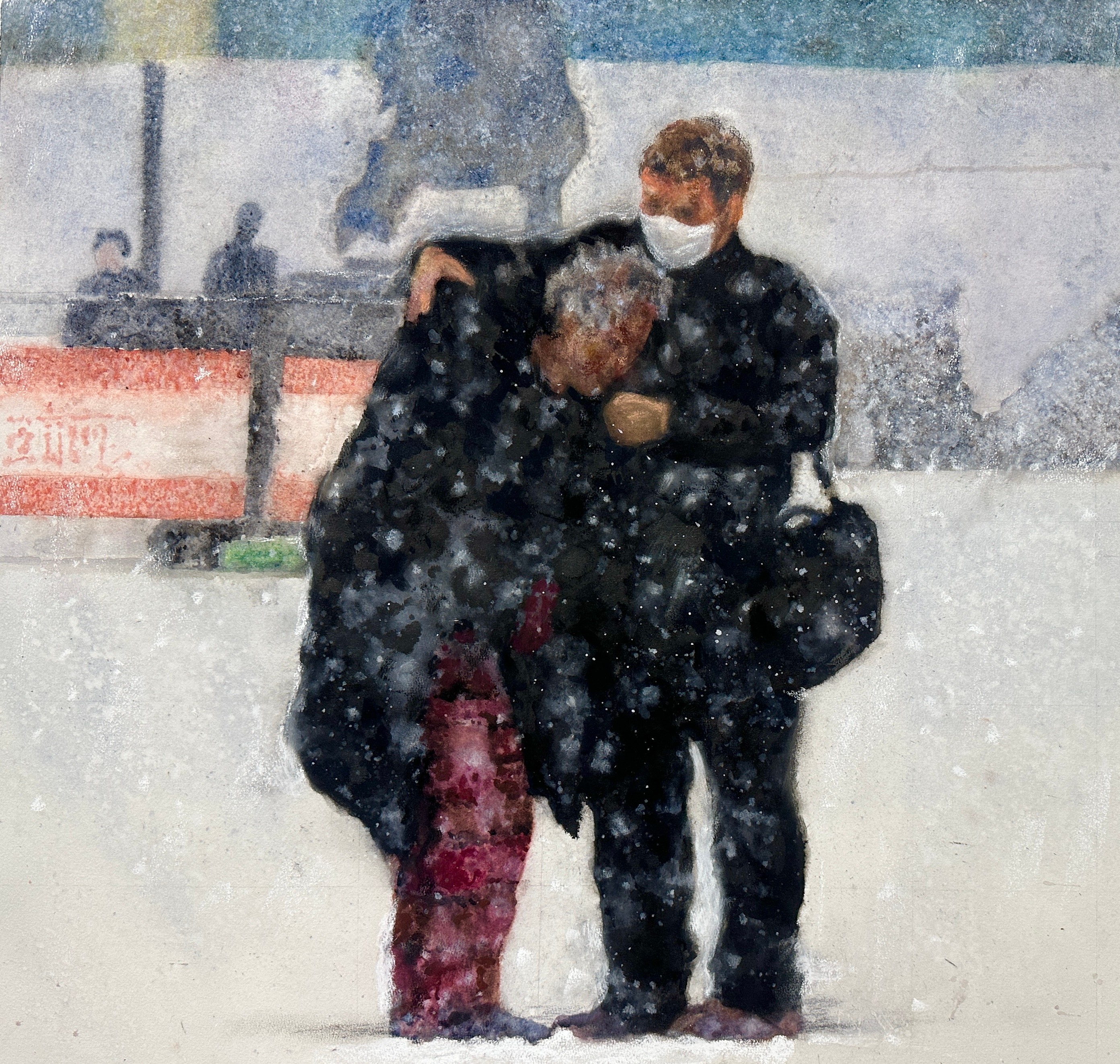 绘画2102班 黎舒琴  《还是等下一趟吧》  150×130cm  指导教师:陈建江
