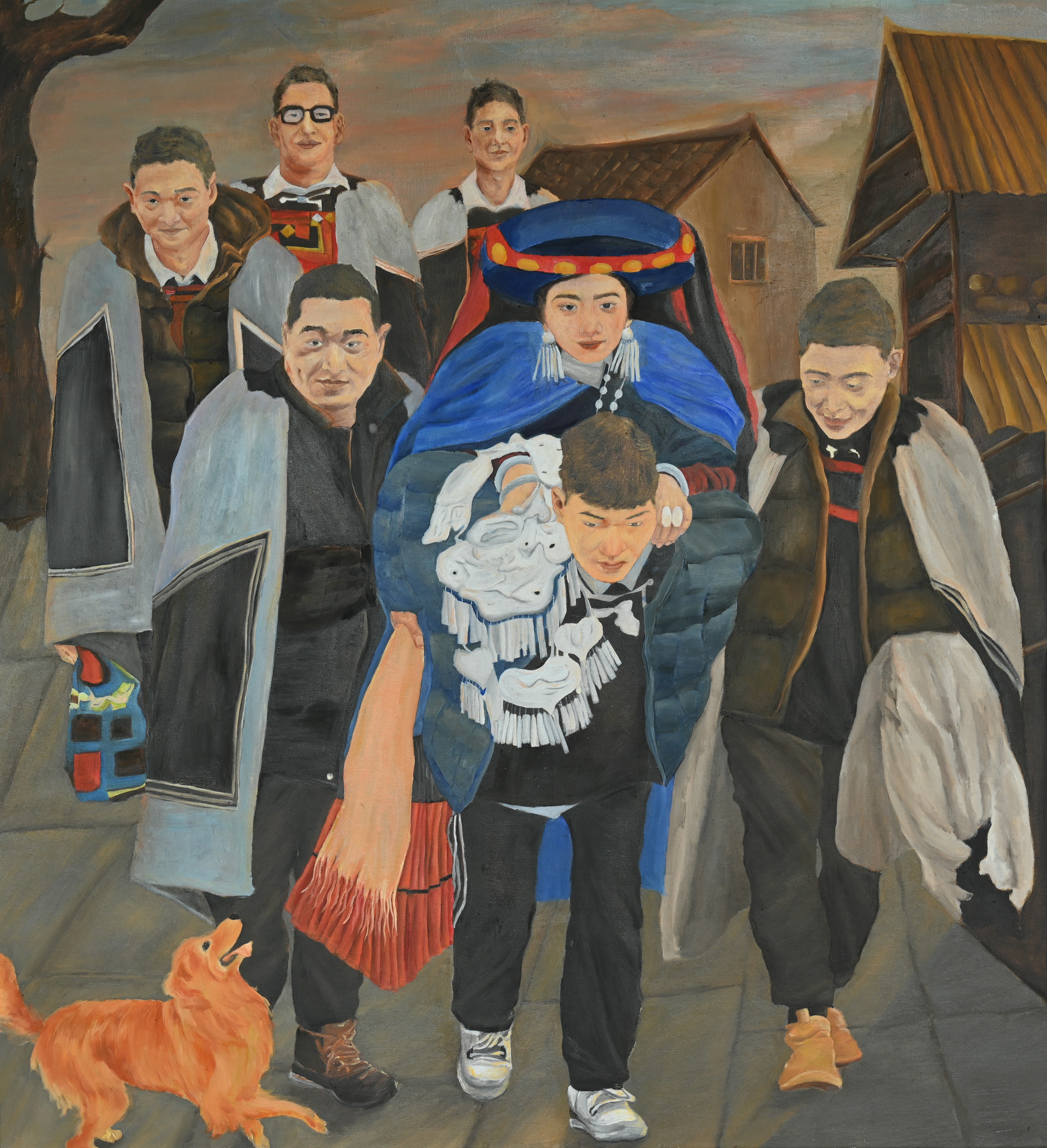 绘画2105班 沙学英 《送嫁》系列二 110.5×120.5cm 指导教师:袁志伟