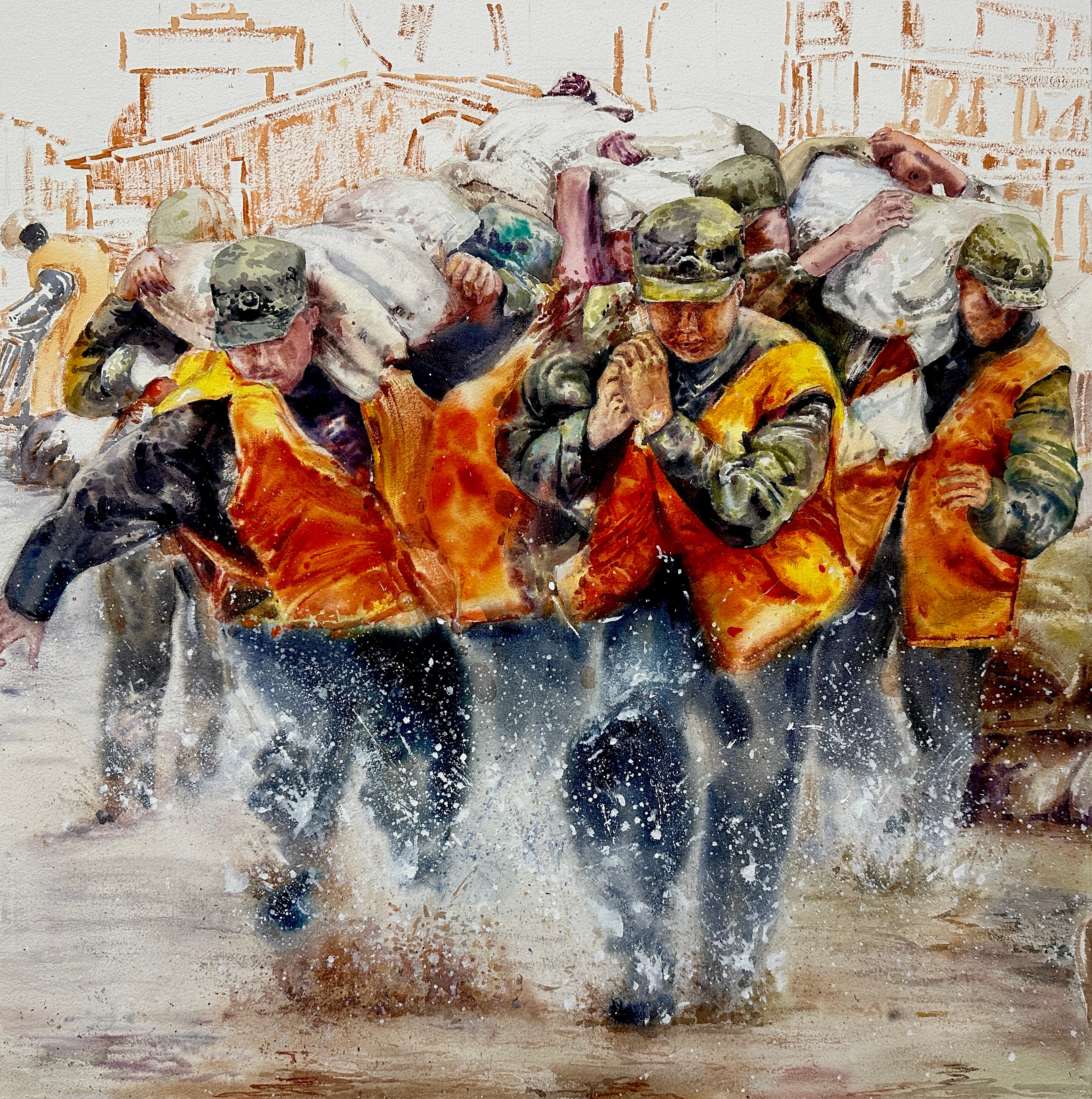 薛成鸥 《抗洪英雄》 76x76cm 指导教师:刘广滨、段凝
