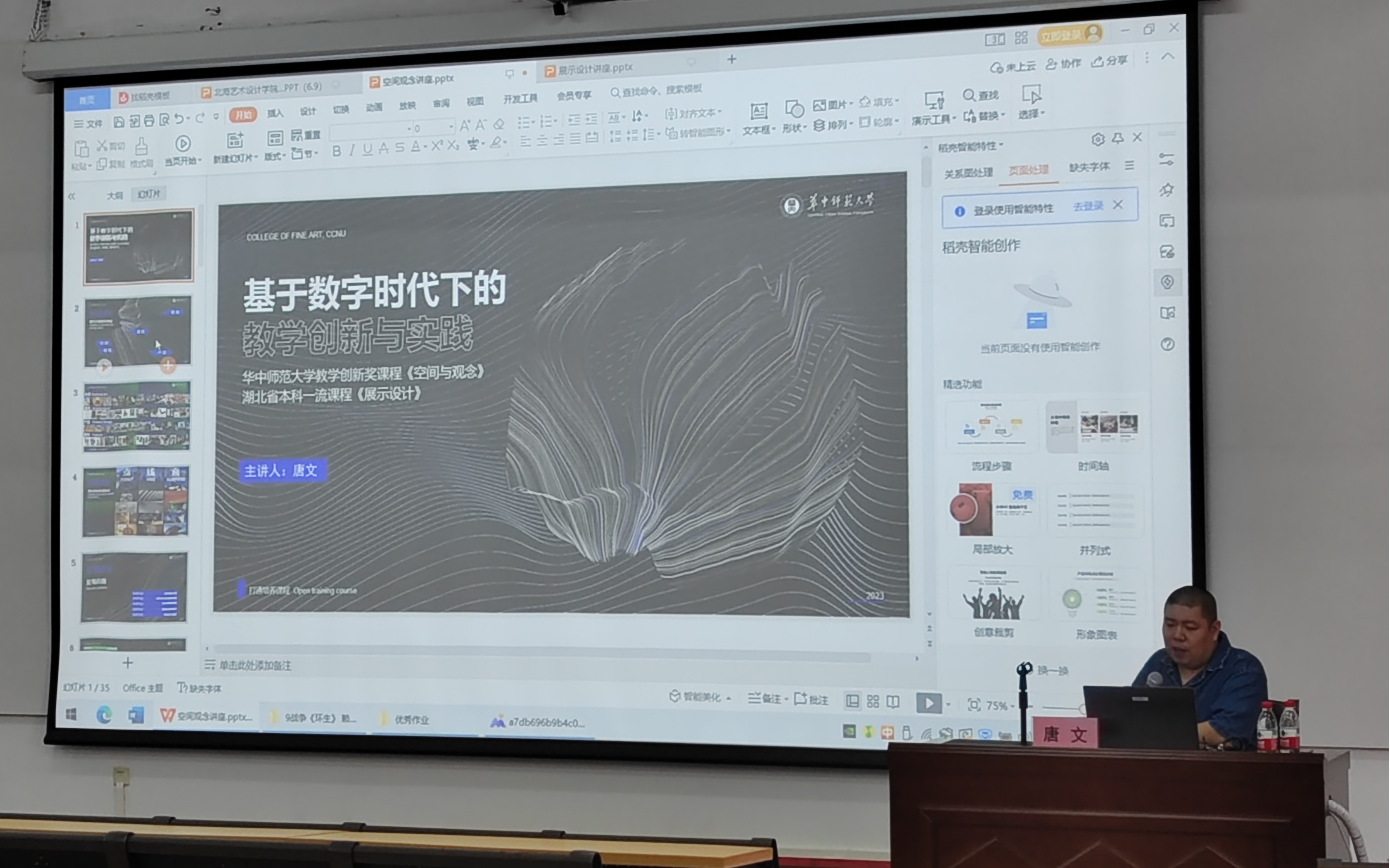 6月11日,华中师范大学唐文副教授以华中师范大学教学创新奖课程《空间与观念》和湖北省本科一流课程《展示设计》为例,开展了“基于数字时代下的教学创新与实践”主题讲座。
