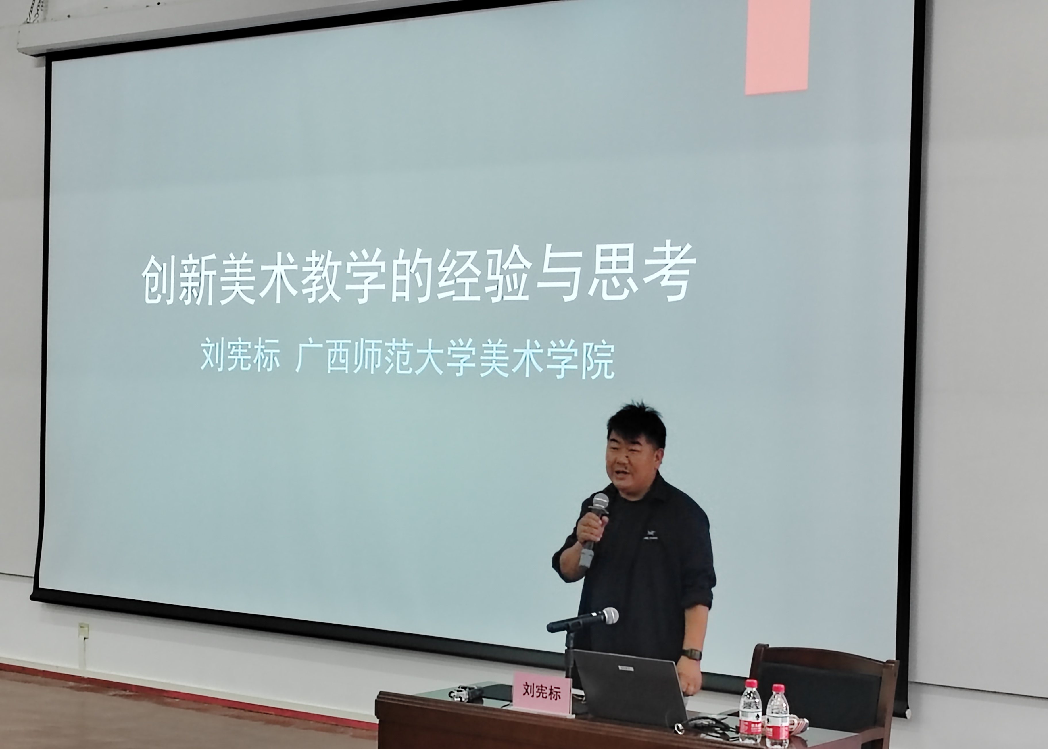 广西师范大学的刘宪标教授以“创新美术教学的经验与思考”为主题,讲解了大学美术课堂如何实现创新,并青年教师提出教学中的一些建议。