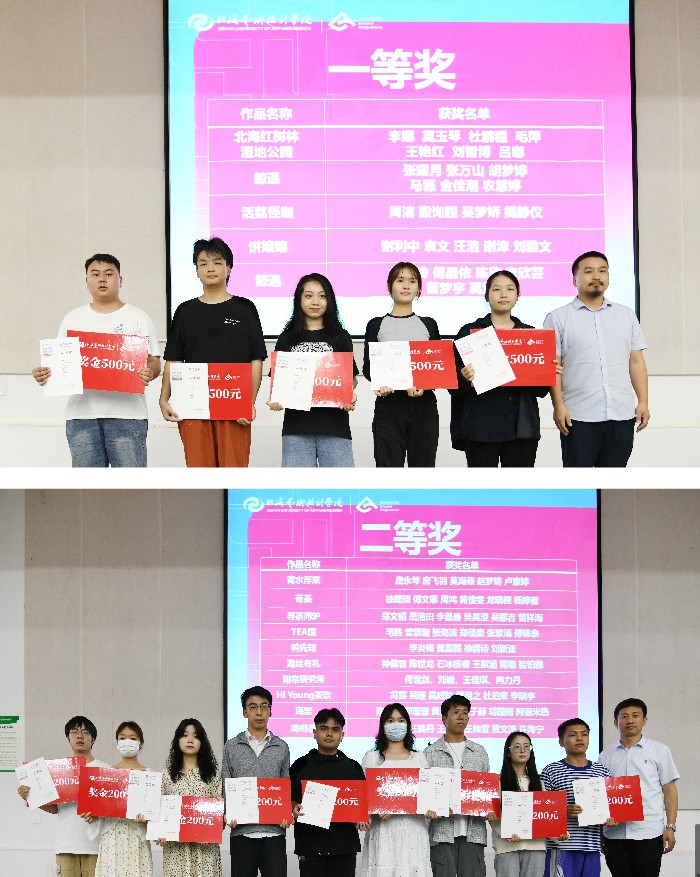 本次大赛通过学院与企业、教师与企业家、课堂与工厂、选题与项目、作业与作品、作品与商品等多维融合开展教学实践活动,并围绕校企合作实践项目、向海经济旅游项目等选题方向进行设计探索和设计实践。实行产教结合,使教学培养目标与企业发展要求相一致,让同学们“真学业务、真练技能”,提升同学们的设计理论水平和项目实操能力,实现学校、企业、学生三方“共赢”,本次典礼,共颁发了79组获奖作品。