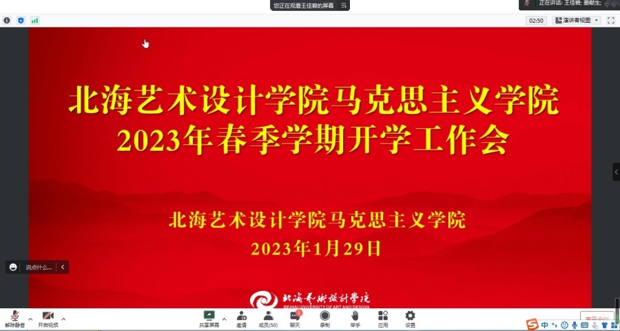 为平稳有序地推进新学期各项教学工作,切实确保新学期线上教学顺利进行,1月29日上午,马克思主义学院通过腾讯会议线上召开了2023年春季学期开学工作会。马克思主义学院全体教师参加,会议由学院综合办副主任王佳碧主持。
