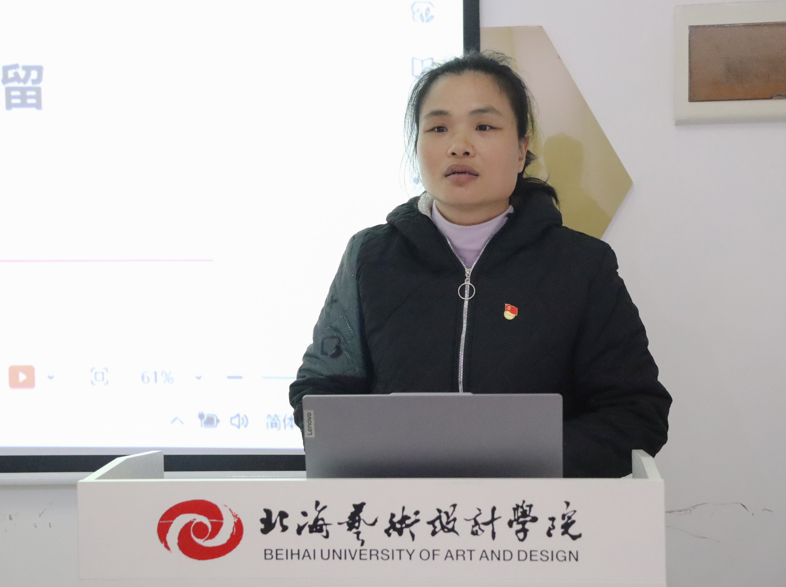 最后,结合我院的教学特色,她强调:思政课教学应多思考培养什么人、如何培养人的问题,坚持立德树人的教学方向,贯彻以学生全面发展为本的理念,促进学生的个性发展。(黎毅/摄)