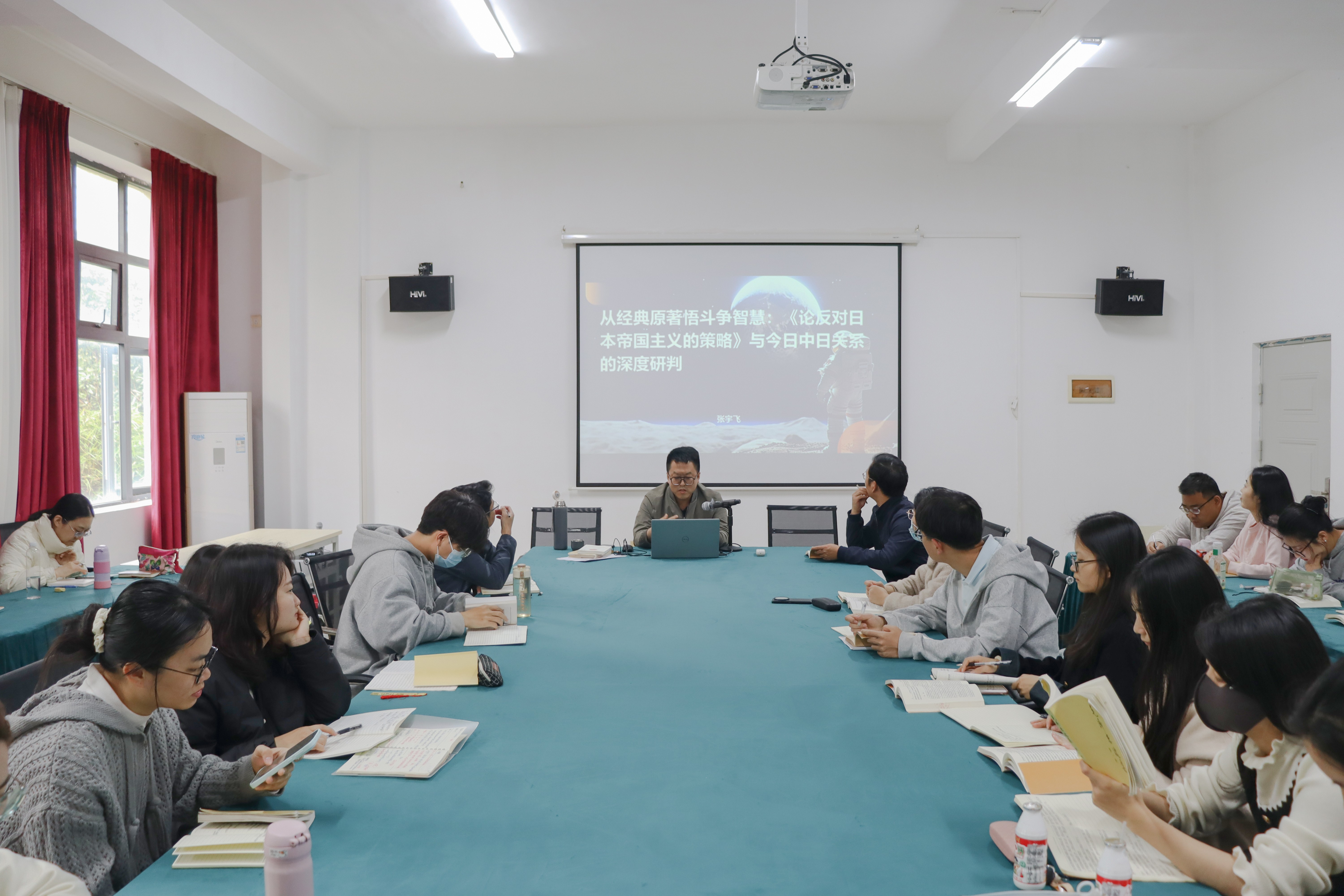 1月16日,马克思主义学院在行政楼211会议室举行第三期马克思主义经典著作读书第二次活动。活动由马克思主义学院副院长张宇飞主持并主讲,主题为《从经典原著悟斗争智慧:〈论反对日本帝国主义的策略〉与今日中日关系的深度研判》,马克思主义学院全体中青年教师参加。