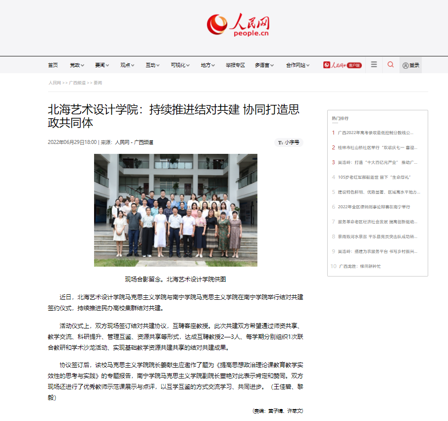 【人民网】北海艺术设计学院:持续推进结对共建 协同打造思政共同体