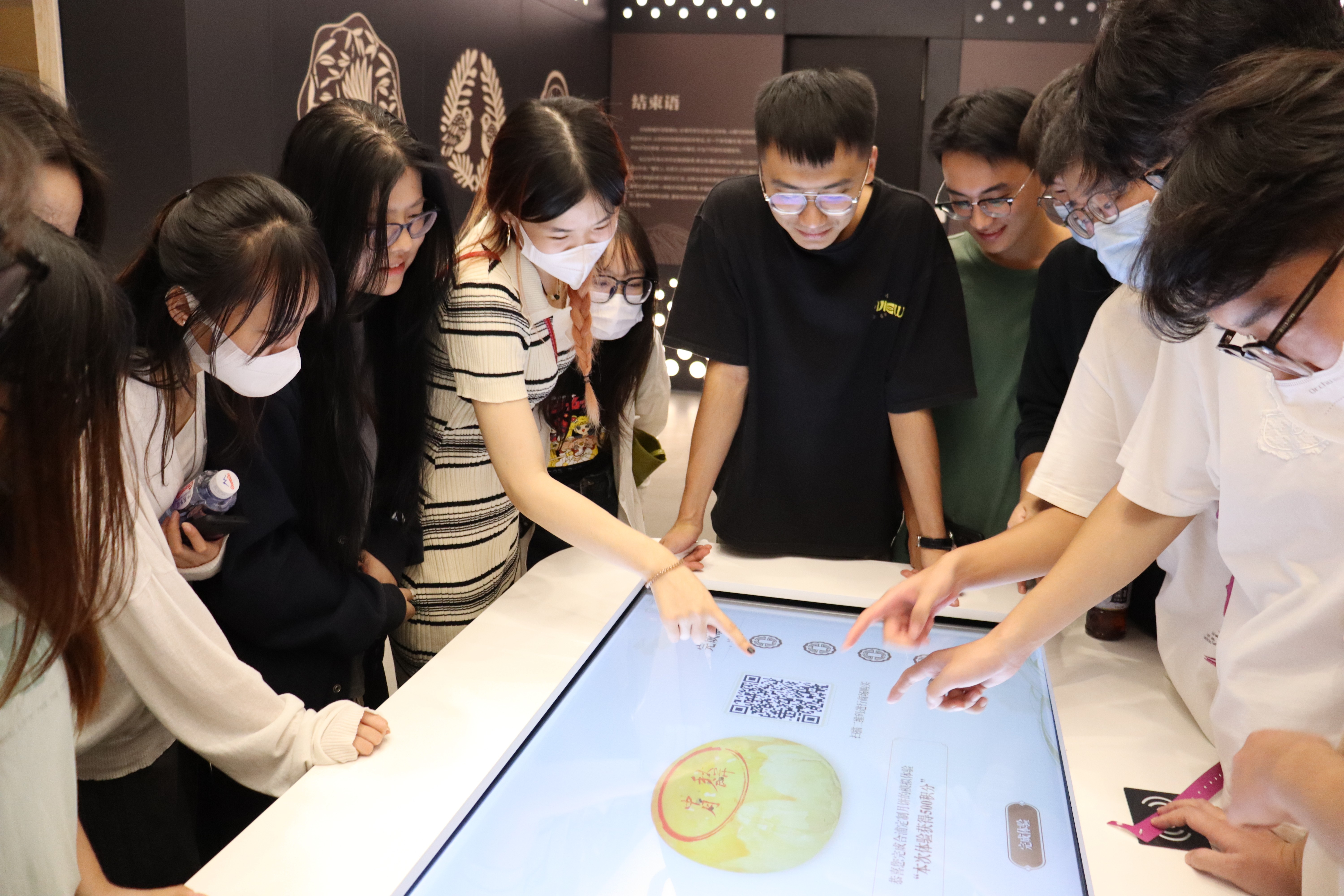 学生认真参观学习