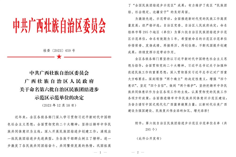 近日,自治区党委、自治区人民政府公布第六批自治区民族团结进步示范区示范单位命名名单,我校入选第六批自治区民族团结进步示范区示范单位。