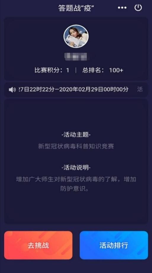 值此党的二十大召开之际,为进一步激发广大学生爱党爱国热情,增强同学们奋发进取、砥砺前行、报国圆梦的信念,图书馆特开展喜迎二十大答题活动本次活动题目主要围绕党的二十大主题,每人每次答题5道题目,答对1题获得20分,满分100分,答错题不会倒扣分,每位同学每日仅能作答一次,作答次数上限为10次。