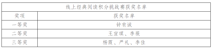 2022年下半年阅读推广活动――畅想之星“喜迎二十大”答题活动已经结束,非常感谢参赛同学们的坚持,现将比赛获奖名单公示如下: