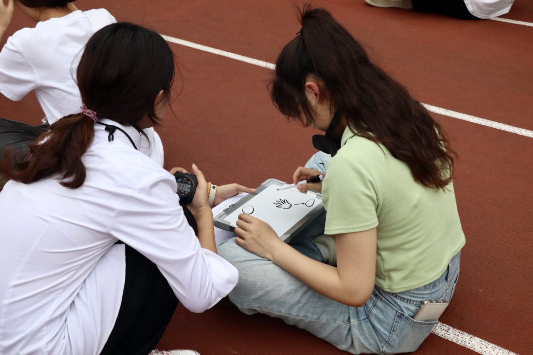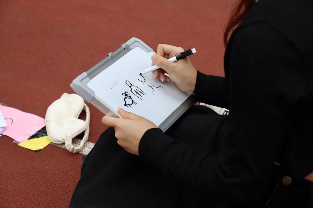 在规定时间内,组内四人接力作画,一人猜题目。参赛选手们绞劲脑汁,认真作答,现场热情的氛围感染着每一位选手。