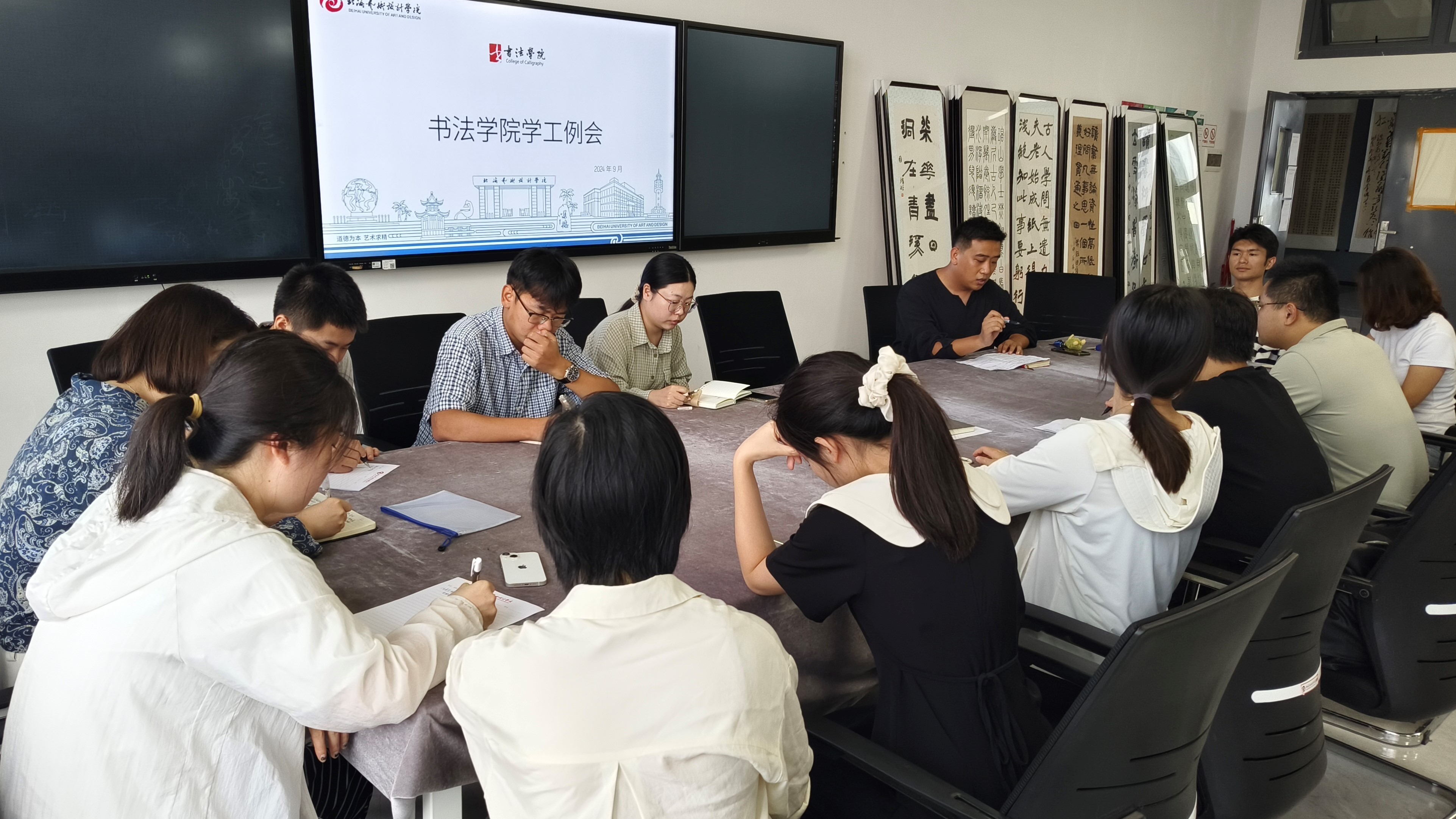 2024925日下午,学生工作办公室于艺德楼507会议室召开书法学院学生工作例会。书法学院党支部书记喻广林、书法学院学工办主任李家琪、副主任左云飞及全体学工教师参加此次会议。会议由李家琪主任主持。