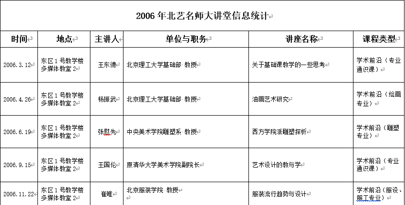 2006年北艺名师大讲堂信息统计