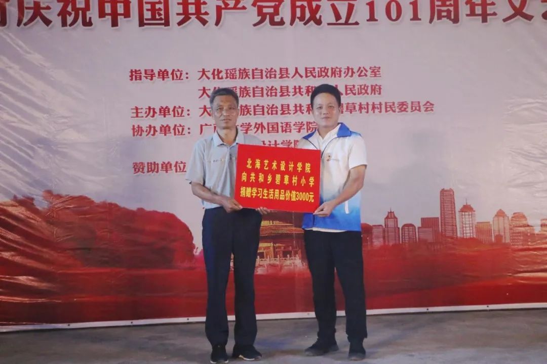 2022年7月,为响应共青团中央号召,北海艺术设计学院师生在河池市大化瑶族自治县开展“民族团结一家亲”暑期“三下乡”社会实践活动。