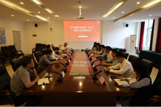 2023年5月12日,教务处主持召开2023届毕业设计(论文)答辩工作安排会议,陶立阳副校长、邱杰副校长以及各二级学院院长、分管教学副院长参加会议。