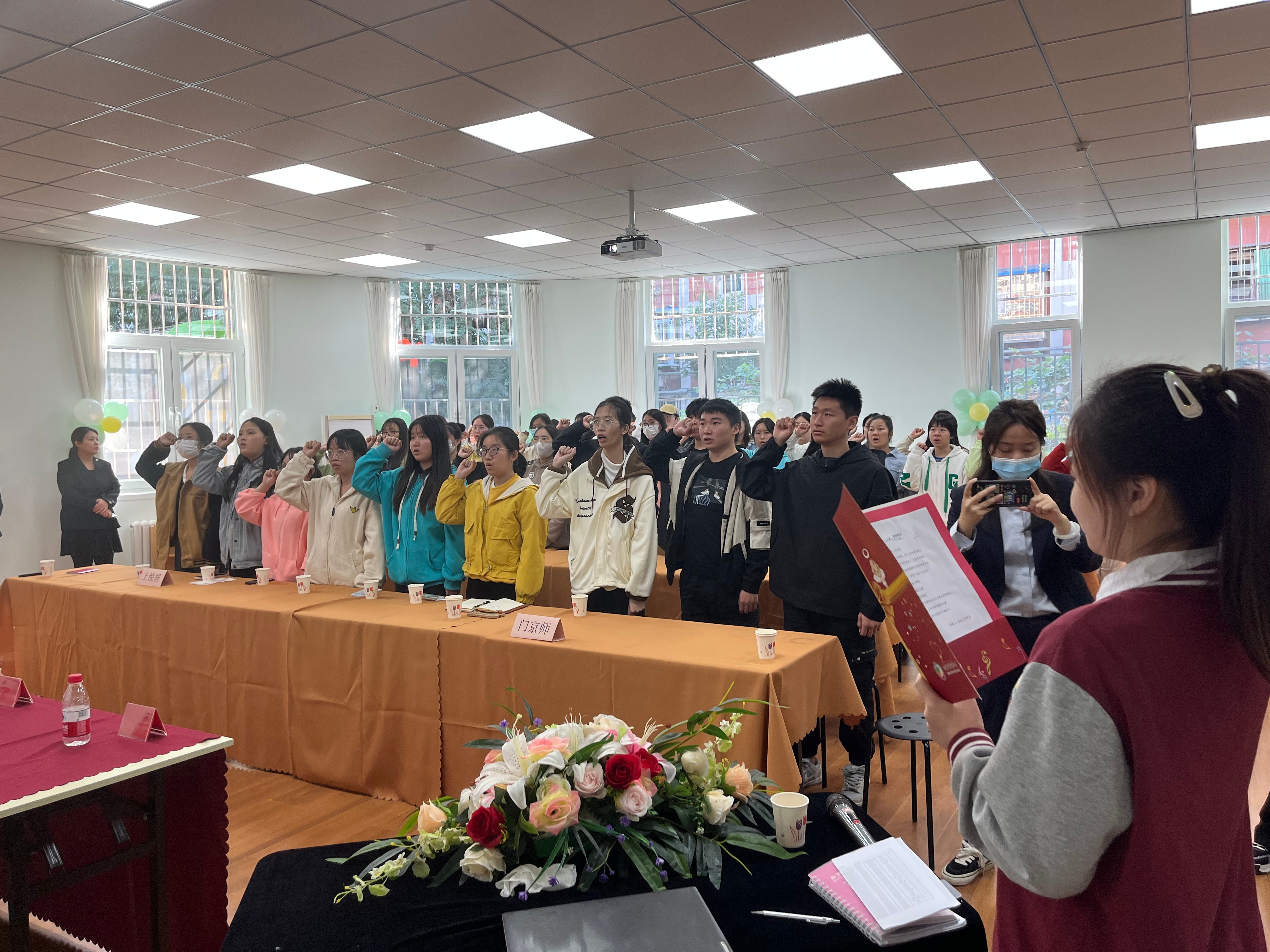图为孙灿与实习生一同宣读誓词