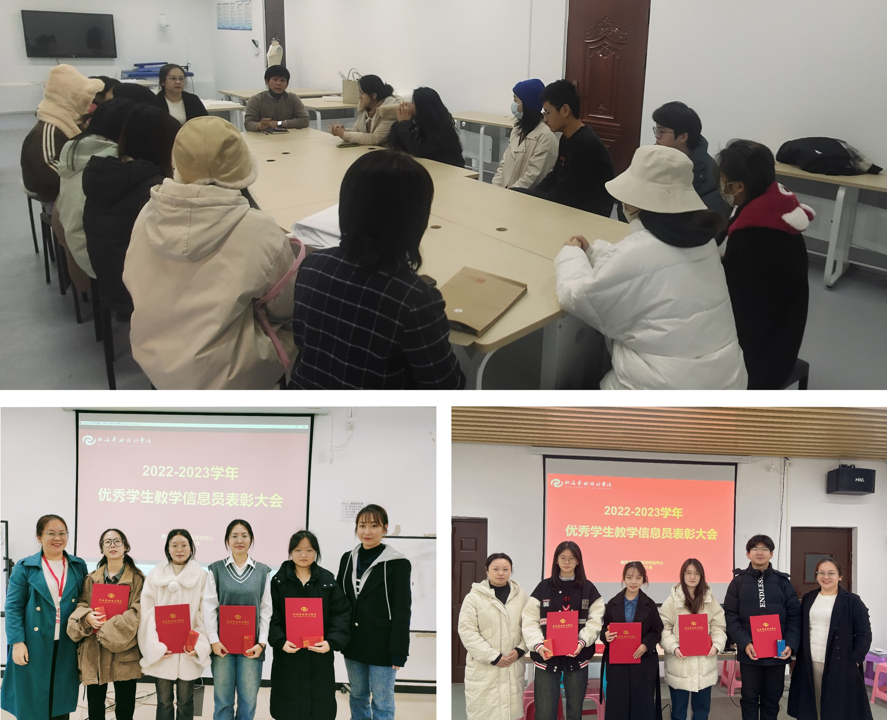 与基地负责人一起召开学生座谈会、颁发优秀信息员奖