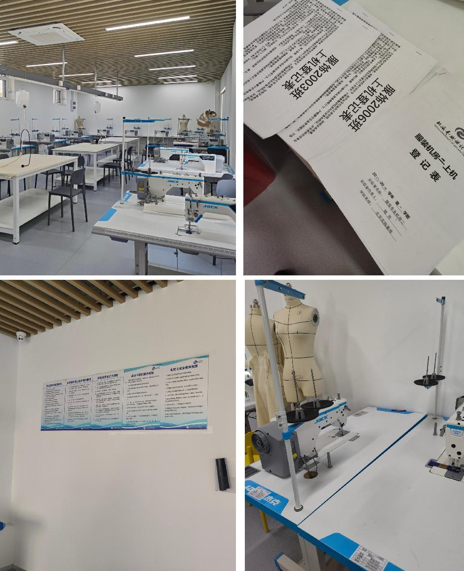 此外,在走访服装设计专业工作室时,我们注意到专业教室管理规范,制度上墙,责任到位。通过与教师进行课间交谈,我们了解到大部分学生都能在教师的指导下进行毕业作品设计工作,而少部分学生因为实习等原因,进度稍慢。