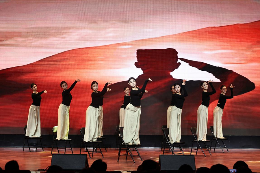 此次文艺汇演以“凝聚新力量 同心颂华章”为主题,由“历史回响”“青春献礼”两个篇章组成,涵盖合唱、诗朗诵、歌舞、武术、汉服走秀、书法、器乐合奏等多种表演形式。