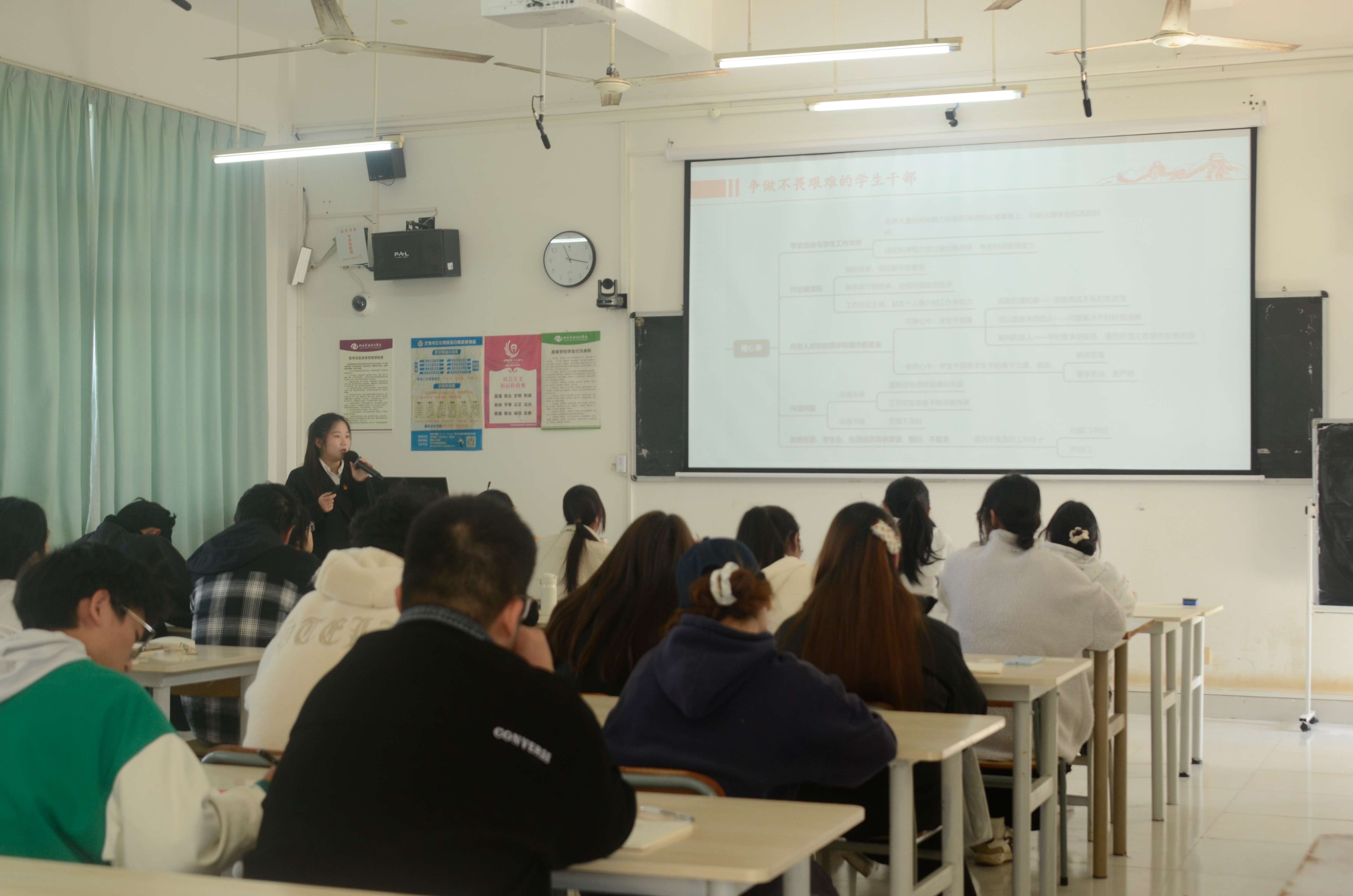 教育学院党支部书记黄思敏以争当新时代有担当的学生干部”为题,强调学生干部应从学生中来,到学生中去,更好服务学生,勇于承担。以高远的理想为指引,坚定的信念作支撑,真正做到立身正、行事端,时刻保持光明磊落的胸怀推动社会向着更加美好的方向大步迈进。