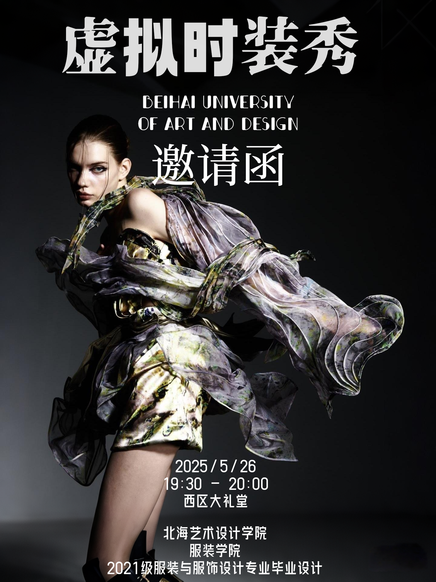我们诚邀请你来到这场科技与艺术的交织,AI与设计的碰撞的服装学院2021级毕业设计虚拟时装秀,期待与你相遇!