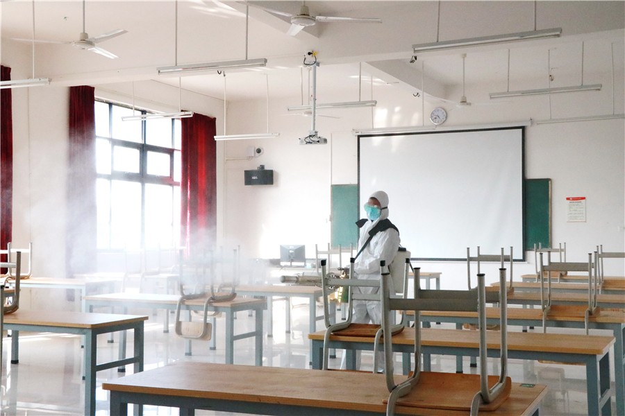 开学复课后,我校还将一如既往做好环境清洁卫生工作,加强日常预防性消毒,努力将防疫工作制度化、常态化、规范化,把好清洁消毒关,筑牢防控安全墙,为全体师生营造一个安全、健康的工作学习环境。