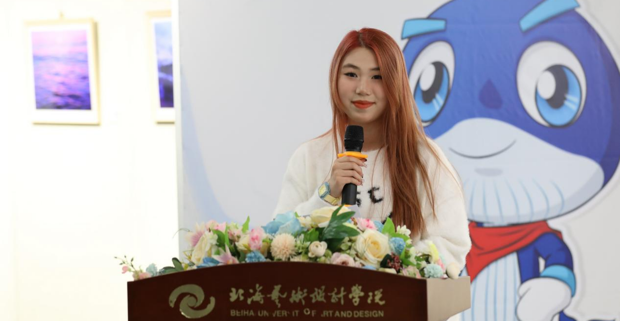参展学生代表播音2405班的白砚琳同学回顾自己参与此次“潮起”手机摄影展的心路历程,并表达了对摄影艺术的热爱,与对学院提供的展示平台表示感谢。她希望自己能够继续在艺术领域深耕细作,成为一名有思想有态度的艺术工作者。