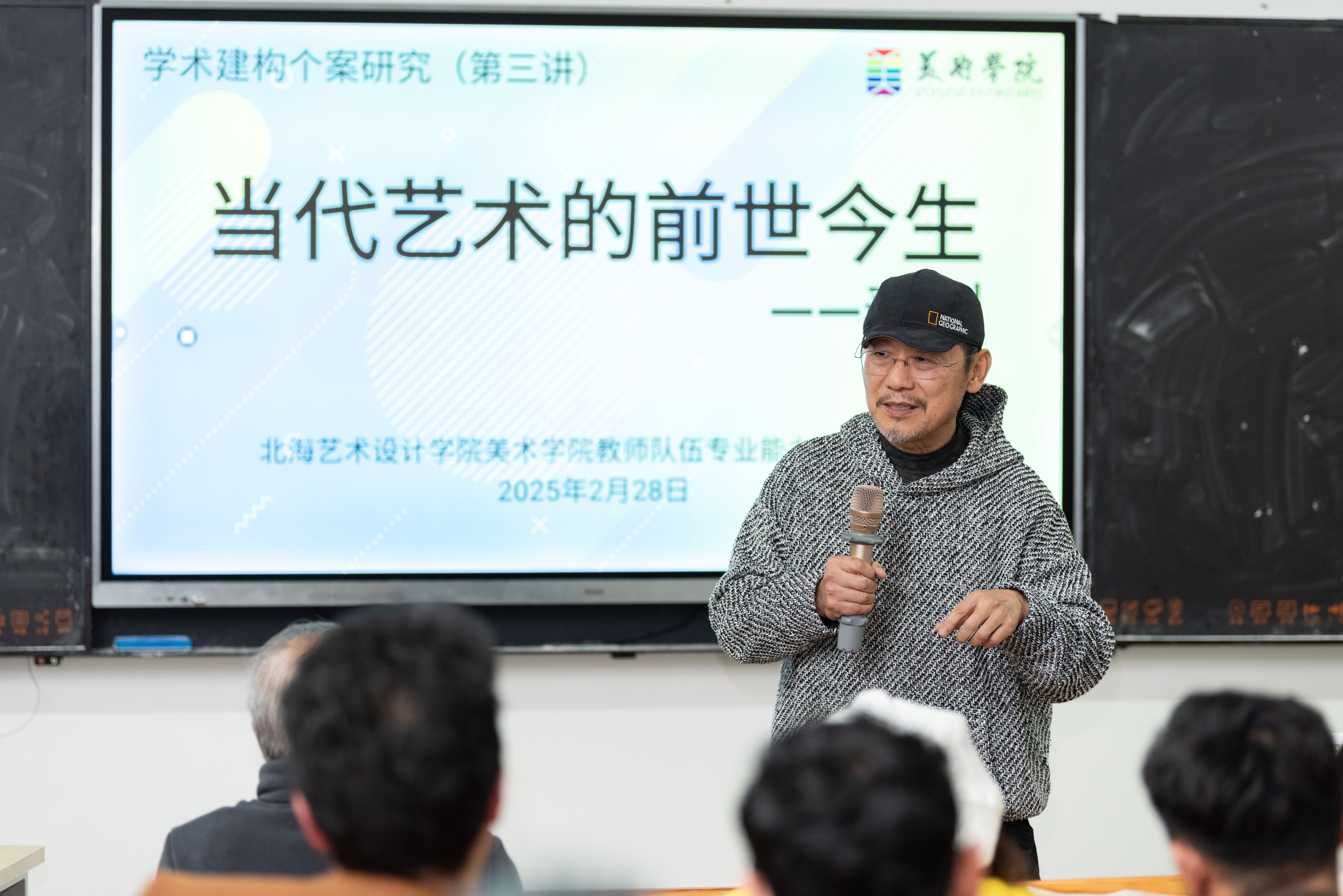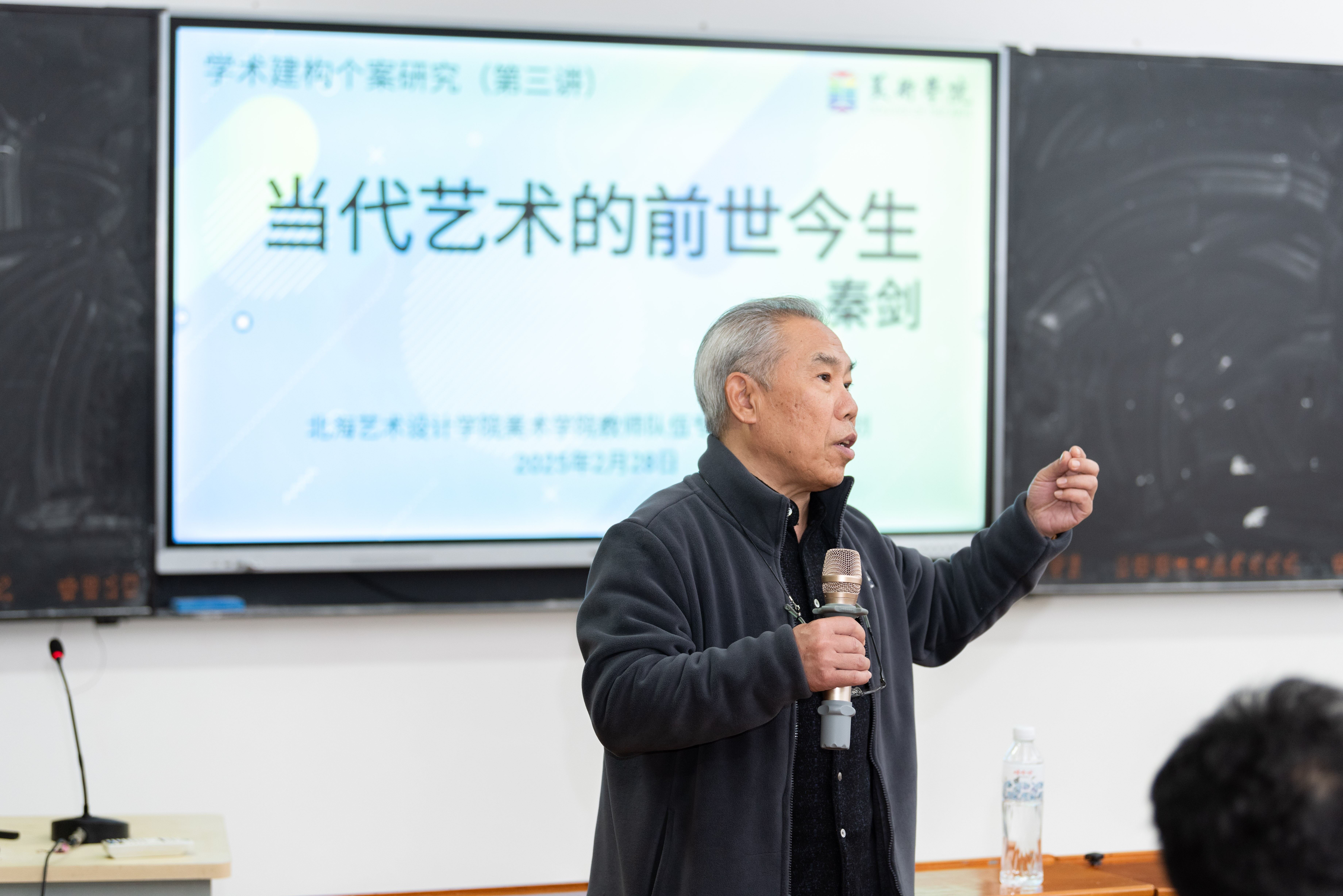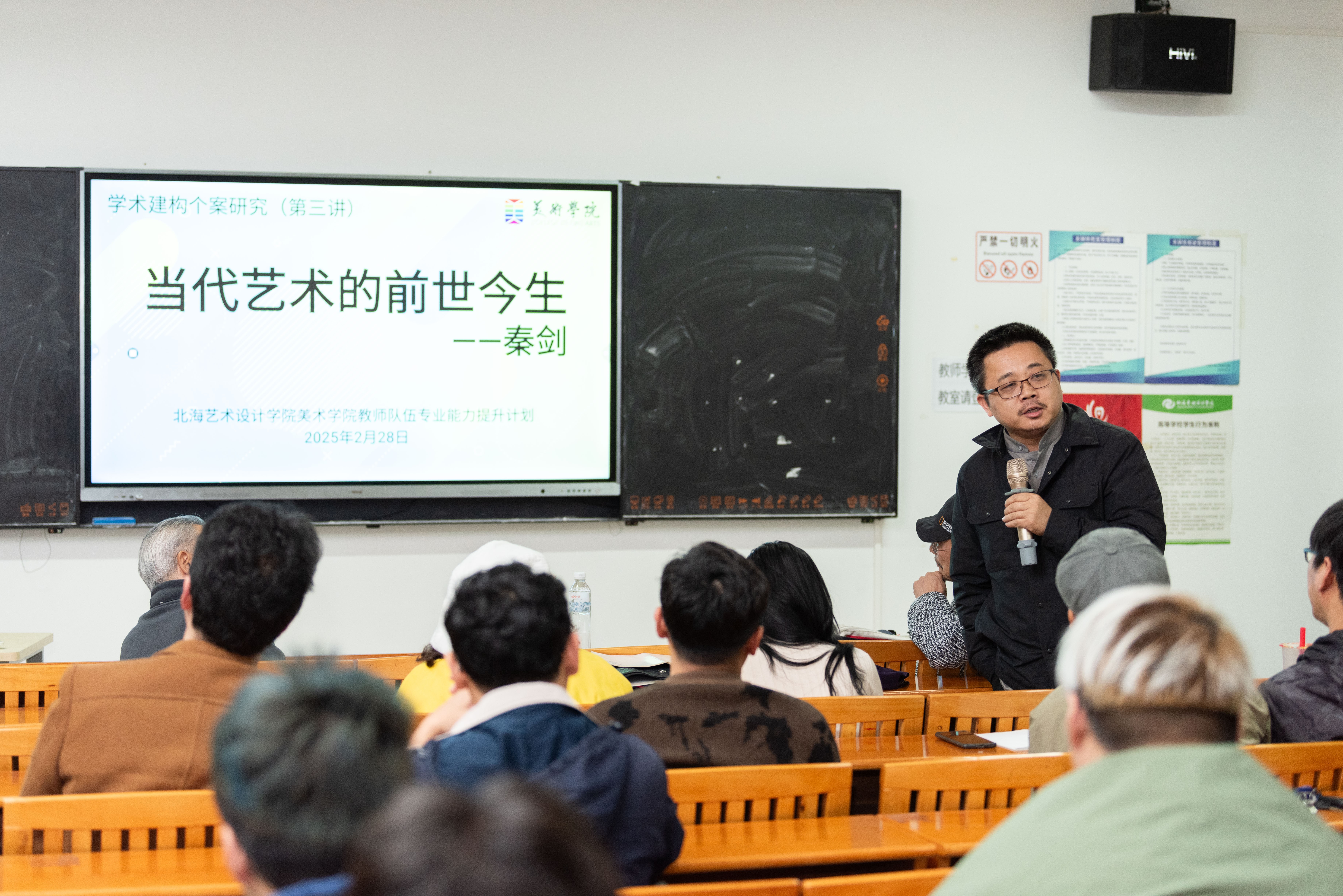 2月28日,美术学院在艺术楼314教室成功举办了“教师队伍专业能力提升计划”系列活动的第三讲。本次讲座以“当代艺术的前世今生”为主题,由美术学院外聘教授,原广西师范大学美术学院油画教研室主任、著名当代艺术家秦剑教授主讲。学院办公室副主任景思晔主持本次讲座,出席人员包括美术学院院长刘斌教授、执行院长龚为教授、副院长金凯婧、副院长陈建江、雕塑专业学科带头人王少军教授以及雕塑、绘画、美术学专业的专任教师。