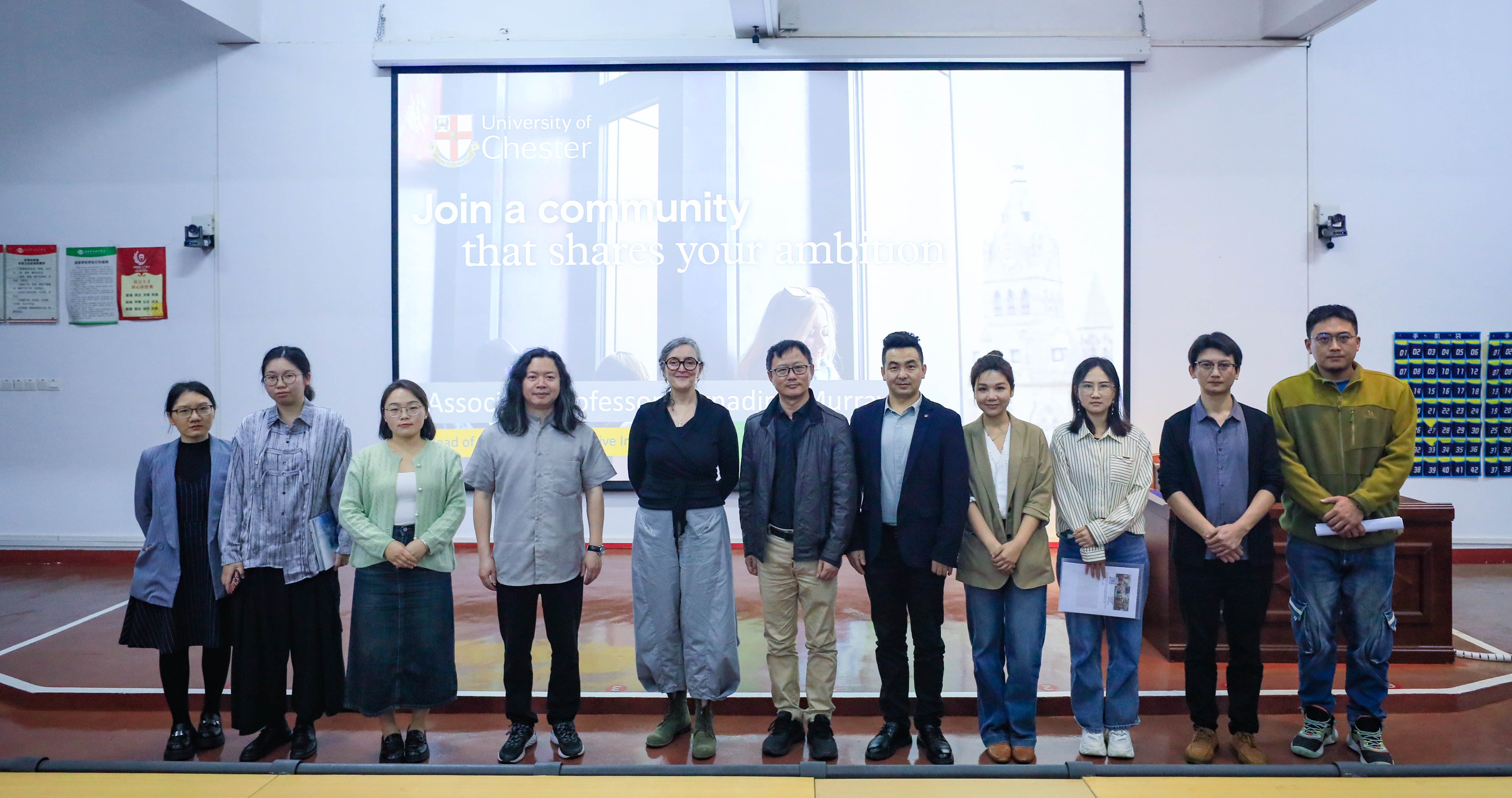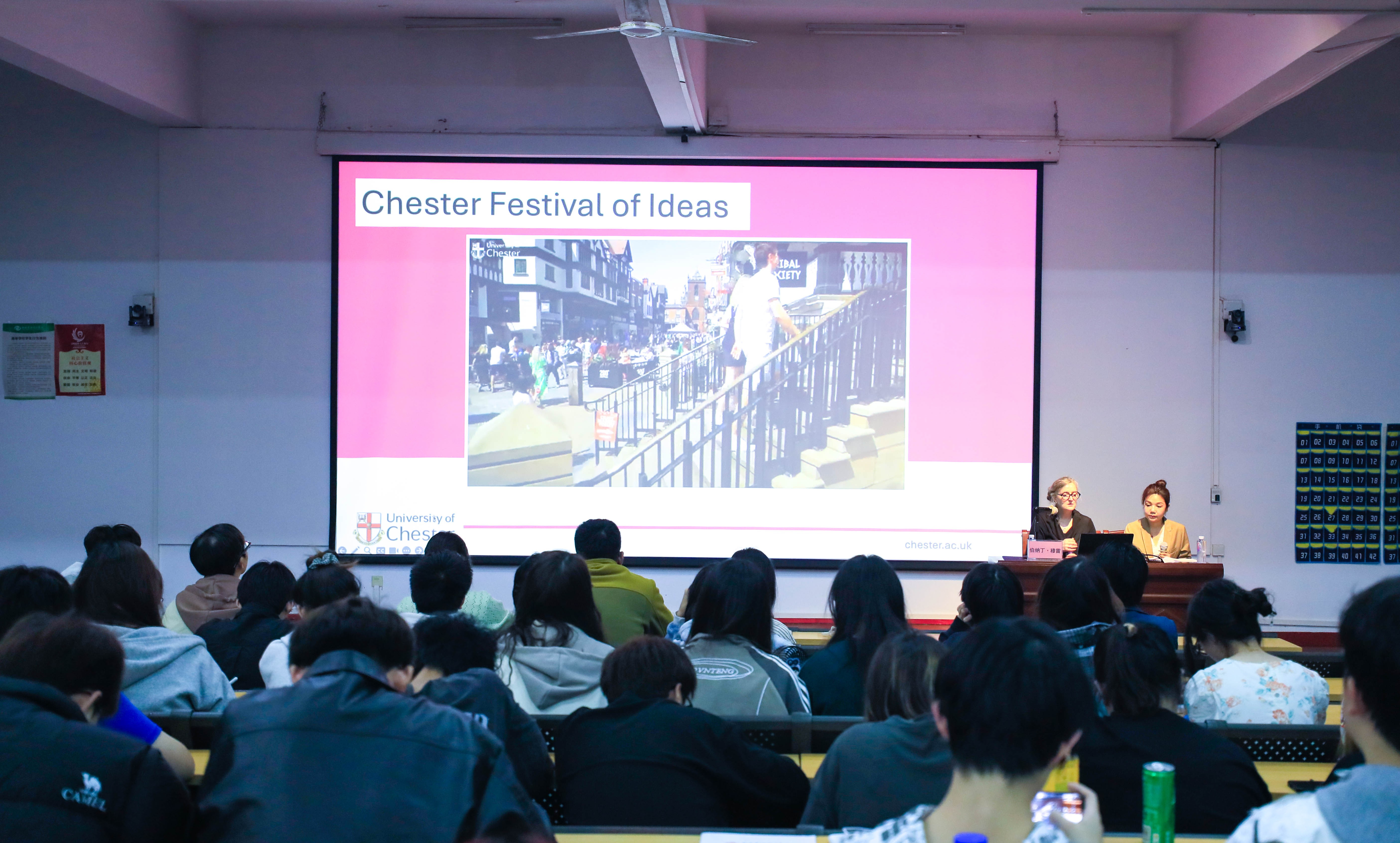 讲座最后,穆雷院长分享切斯特大学的官方微信,微博,小红书账号,并鼓励在座师生今后通过社交平台多交流。