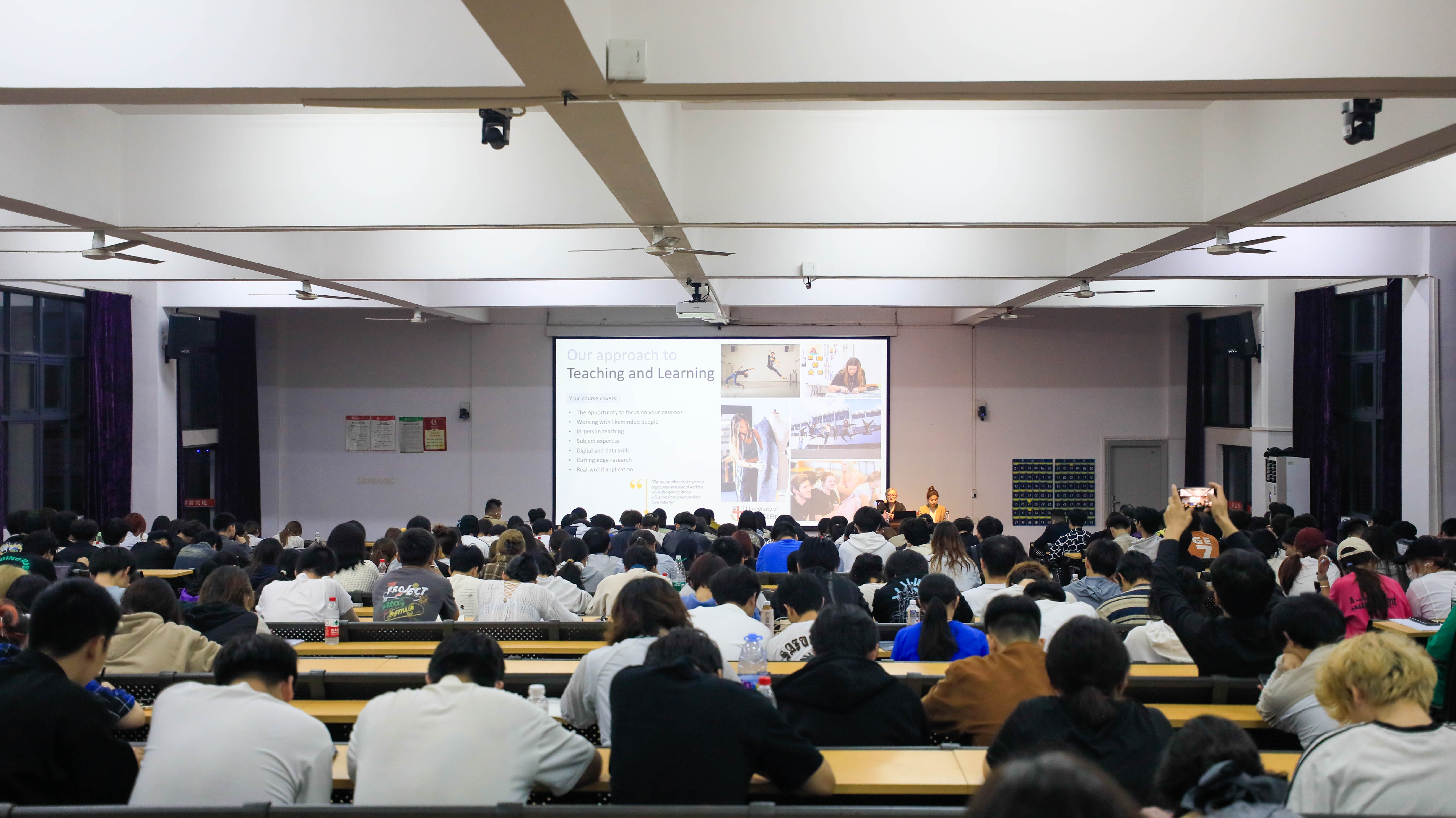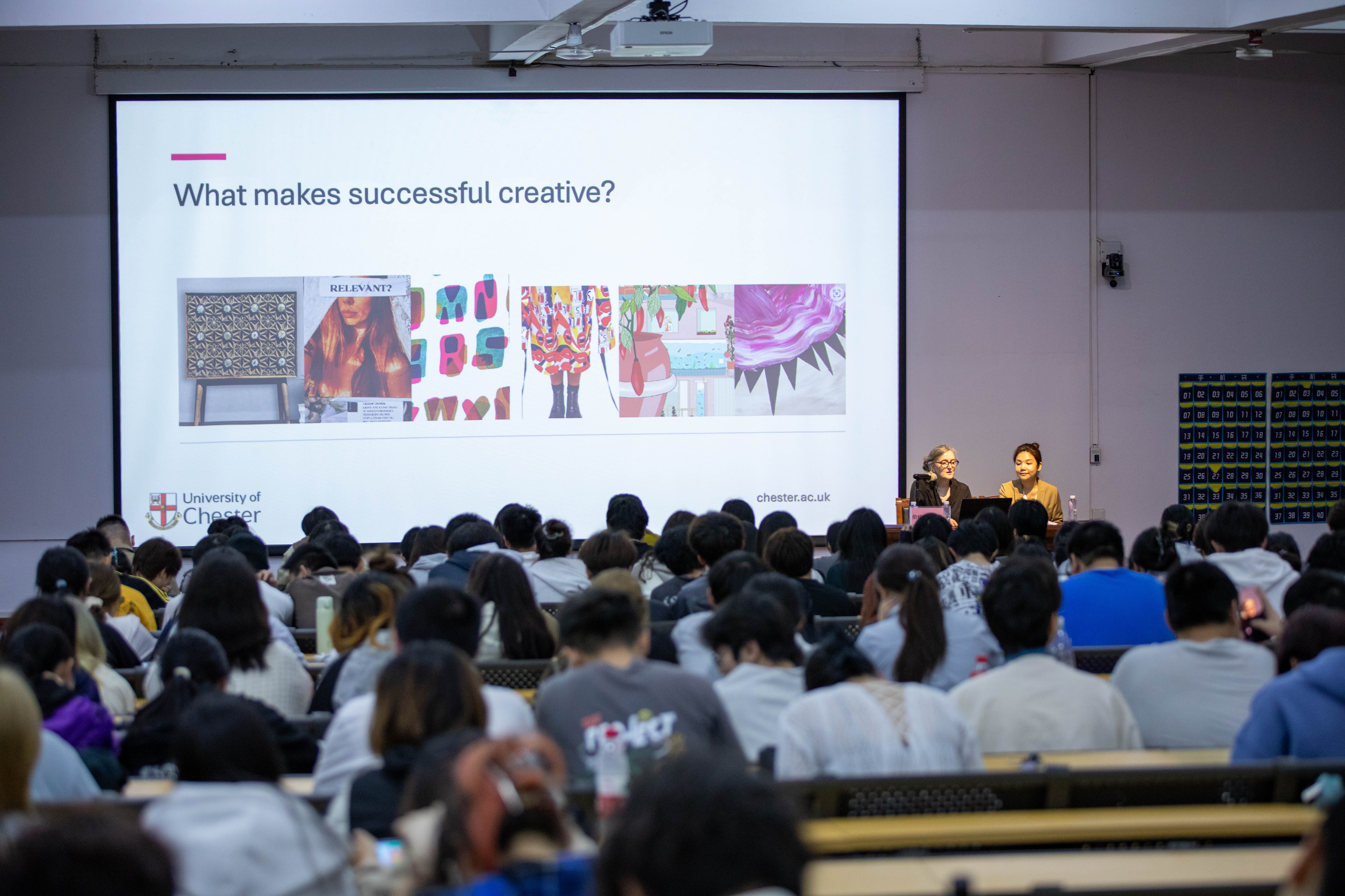 穆雷院长还通过多个创作案例向师生们展现了切斯特大学在动画与数字媒体领域的跨界实践。切斯特大学学生作品《修补与改造》联动加纳Slum Studios、利物浦Open Eye画廊及本地慈善组织,将二手服装升级为艺术装置,推动可持续时尚与社区联结;动画短片《边界之间》融合数字技术与公共艺术,在社区空间创作互动投影,探讨文化认同议题。她特别提及校友Lili Sipeki凭借“校服升级改造”项目斩获Redress设计大奖,以及Alexandra Novacki将传统剪裁与现代数字设计结合登上《Vogue》的案例,印证“教育-实践-产业”闭环培养模式的实效。