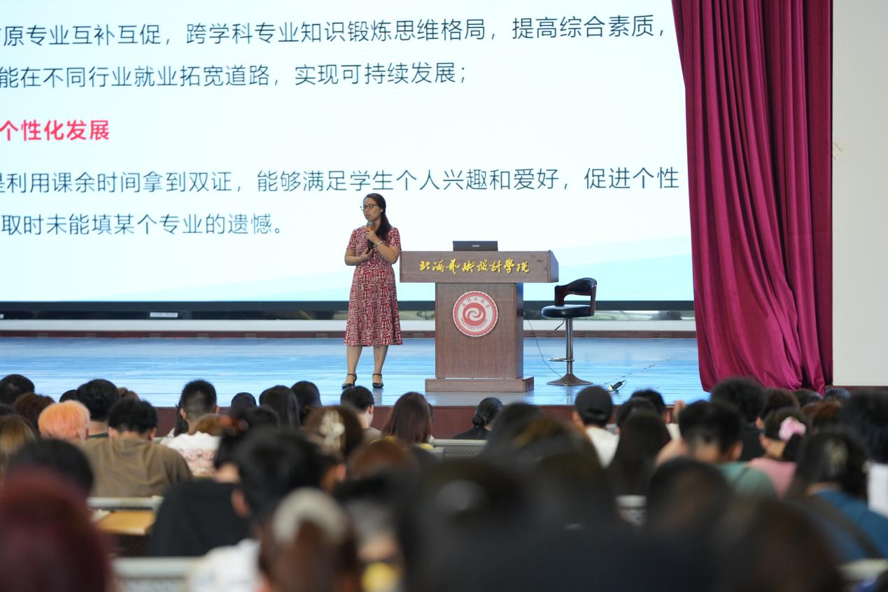 会议接近尾声之际,教育学院熊秀峰院长紧跟当前就业形势,为在座学子深度剖析了辅修学位的潜在优势与广阔前景。她鼓励同学们充分利用大学四年的宝贵时光,通过多元化学习与全方位能力提升,积极应对日益复杂的就业挑战,为步入社会做好充分准备。熊秀峰院长的讲话,不仅为学子们指明了成长方向,也进一步激发了他们追求卓越、勇于探索的热情与动力。