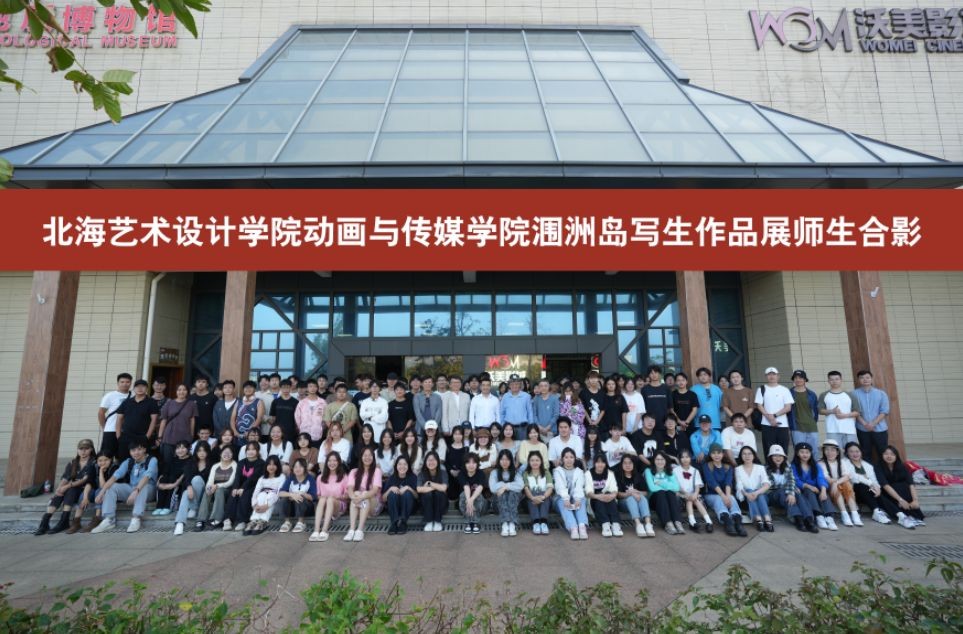 为积极响应北海市2023年“文化北海”建设活动,11月23日,北海艺术设计学院动画与传媒学院联合沃美影城在涠洲岛鳄鱼山游客中心地质博物馆举办了一场别开生面的写生作品展。北海艺术设计学院崔君旺教授、张玉祥教授、范淼教授、李明伟教授,动画与传媒学院孙永辉院长受邀出席,动画与传媒学院200余名师生参加,活动由数字媒体艺术专业张海峰老师主持。