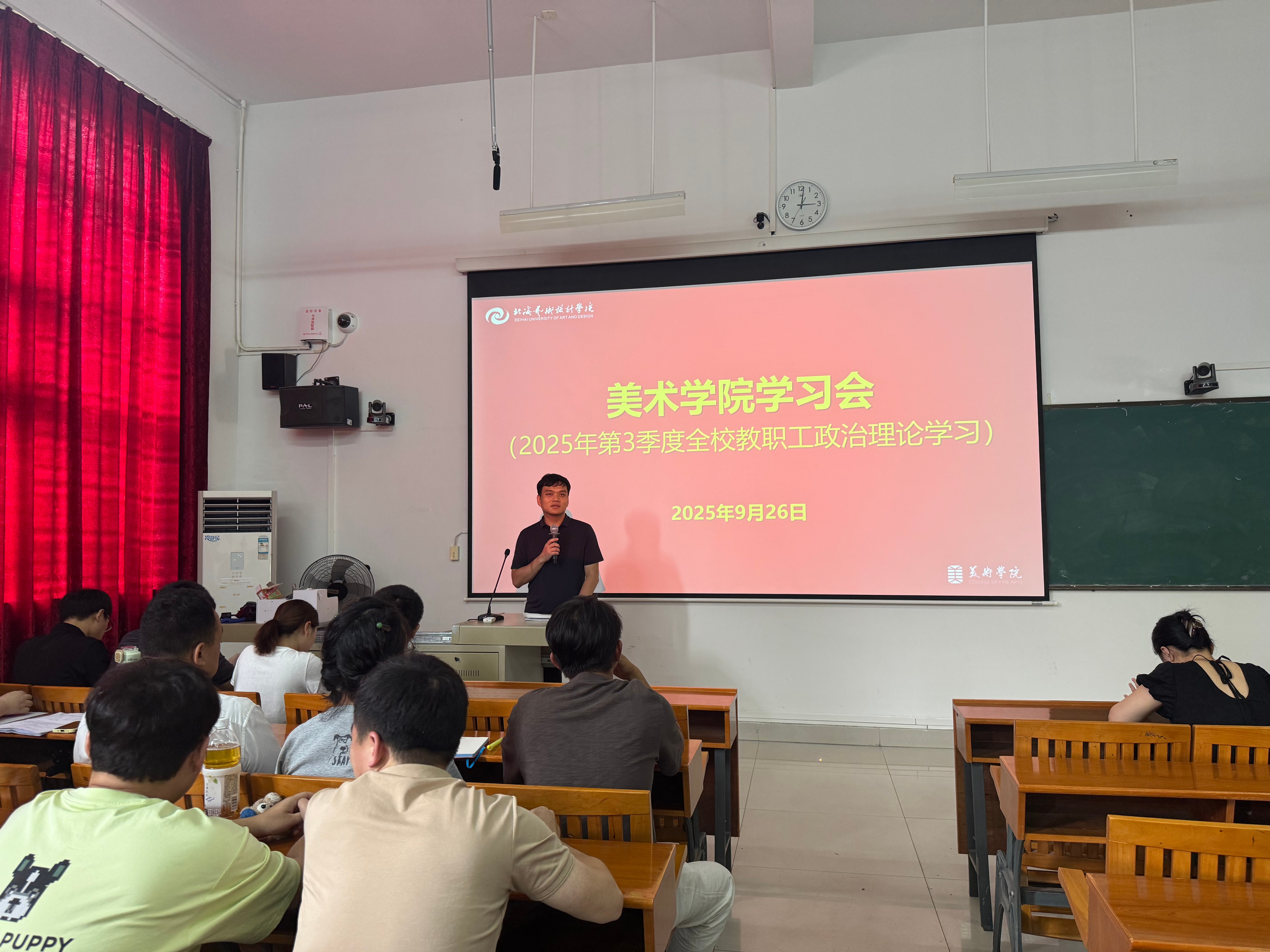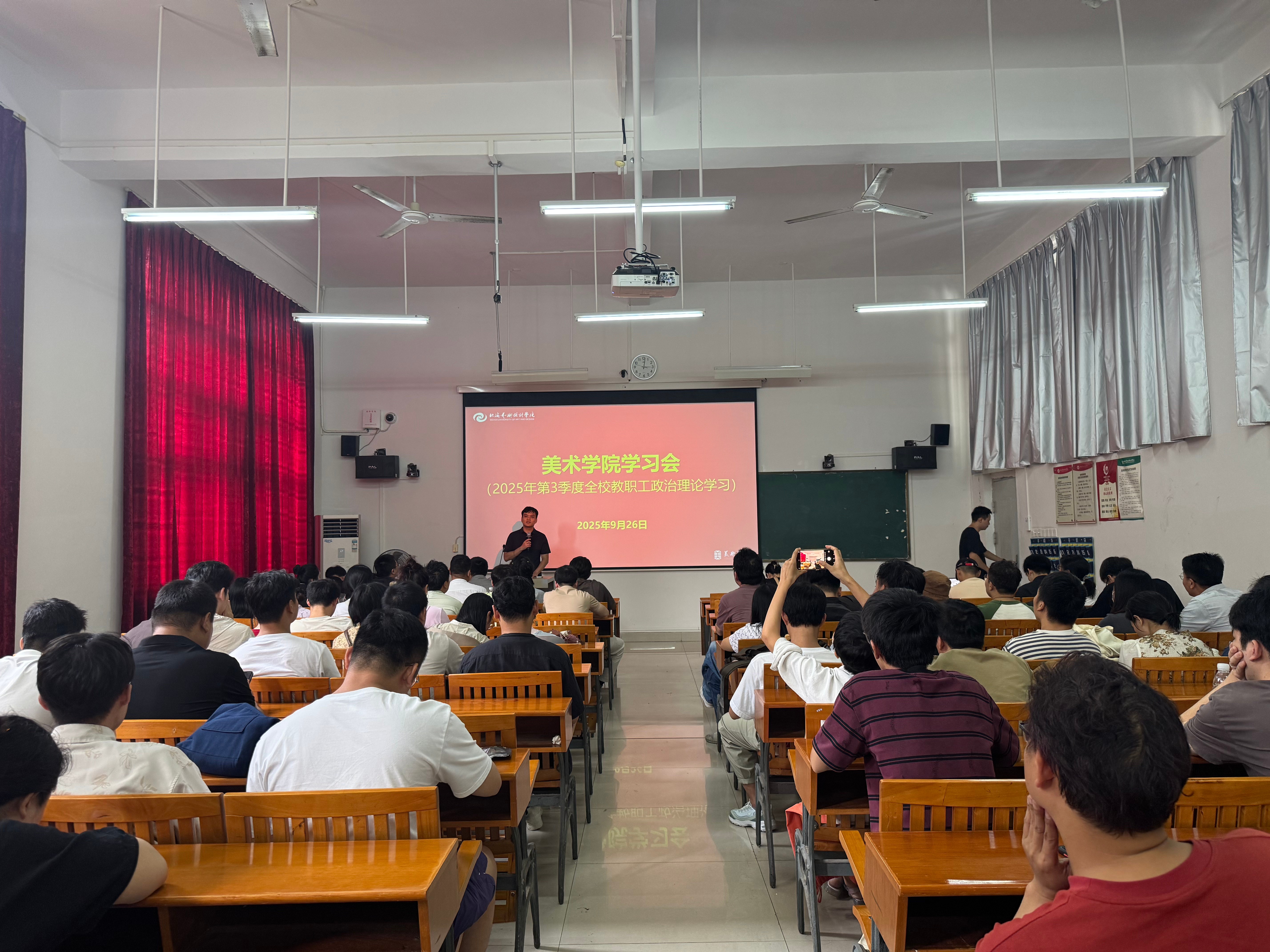 9月26日,美术学院按照学校党委的统一部署和要求,紧密结合学院工作实际,组织全体教职工开展了集中专题理论学习。本次学习聚焦核心理论与时政要点,旨在提升思想政治素养与理论水平,夯实培养时代新人的思想基础。