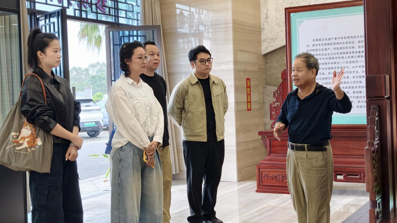 2025年11月6日上午,美术学院副院长凯婧率队前往合浦金蝠角雕有限责任公司进行交流活动。随行人员包括雕塑教研室主任黄寿宁、学工主任杨凯及美术学教研室副主任李洋帆。双方围绕雕塑与美术学专业的人才培养、课程共建及毕业生毕业设计进展等议题进行了深入探讨。