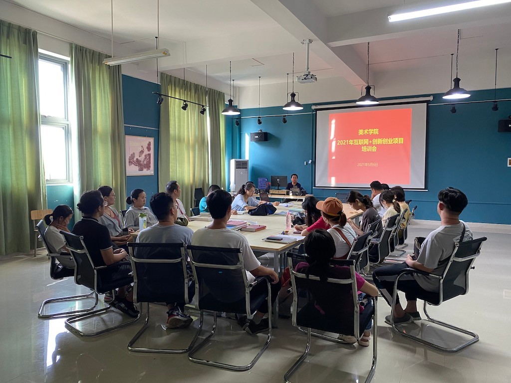 2021年5月6日下午,由美术学院副院长唐海主持并主讲的“互联网+”创新创业项目培训会在我校艺术楼313举办,美术学院近两年重点大创项目指导教师及部分年轻教师参加此次培训会。