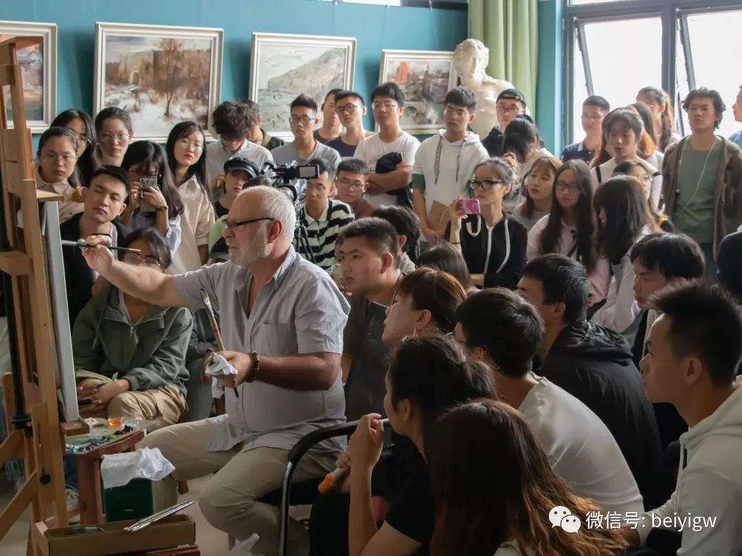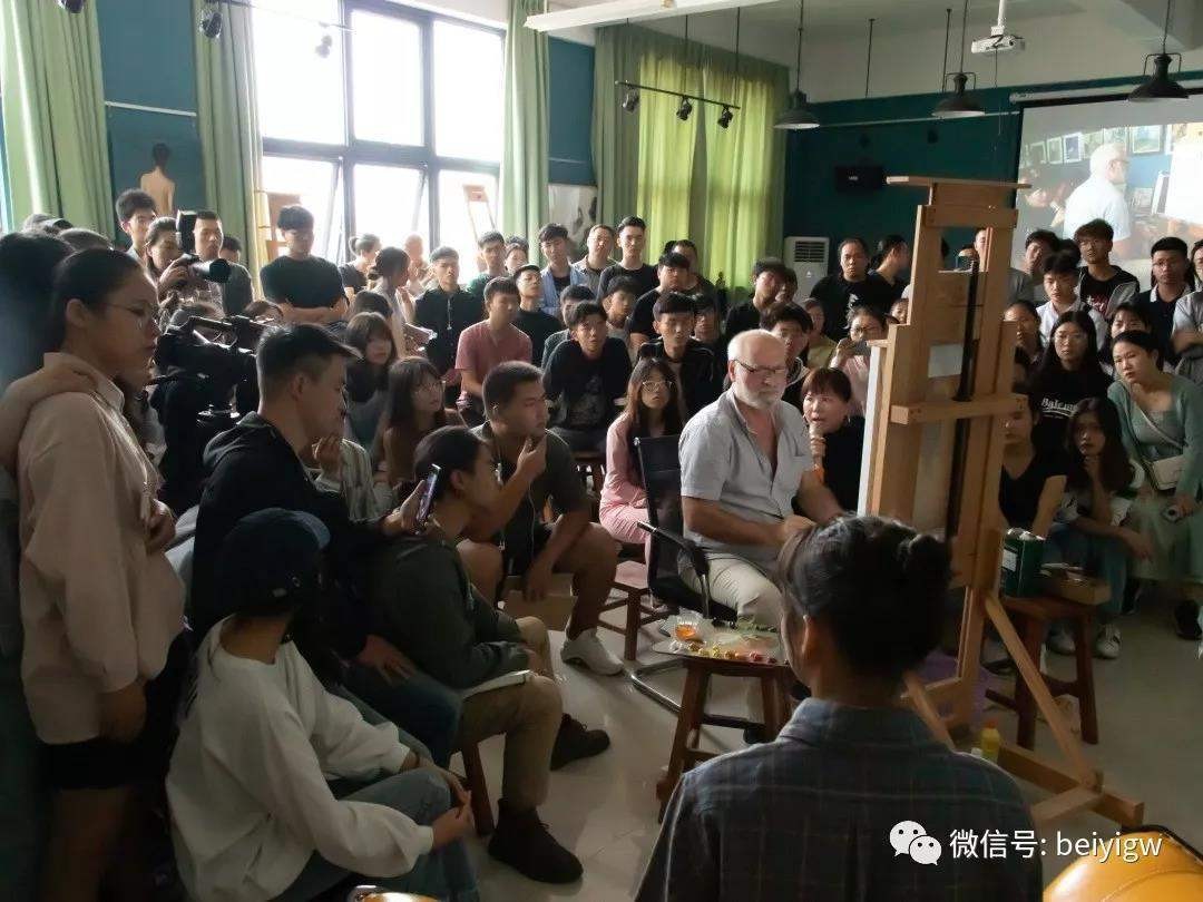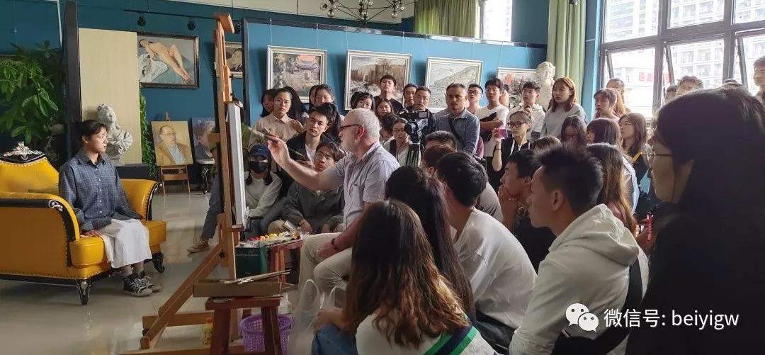 2019年11月12日(星期二)上午,乌克兰艺术科学院院士、绘画艺术大师米·顾依达莅临我校美术学院教研室(艺术楼313)开展人像写生示范,学院师生积极参与并一同观摩现场作画。