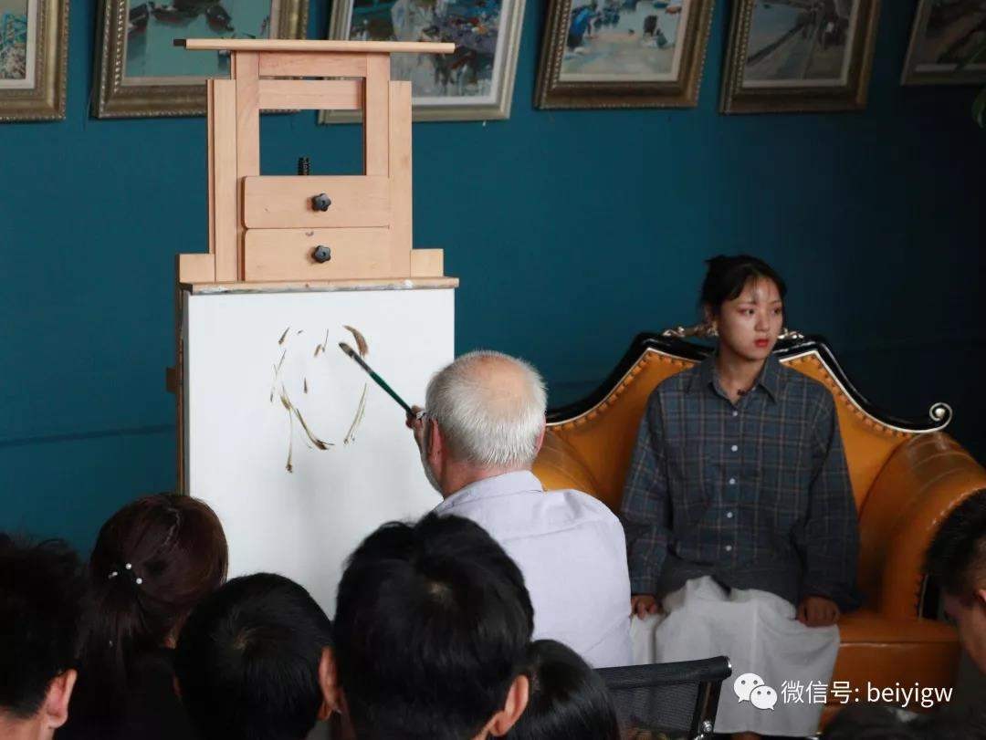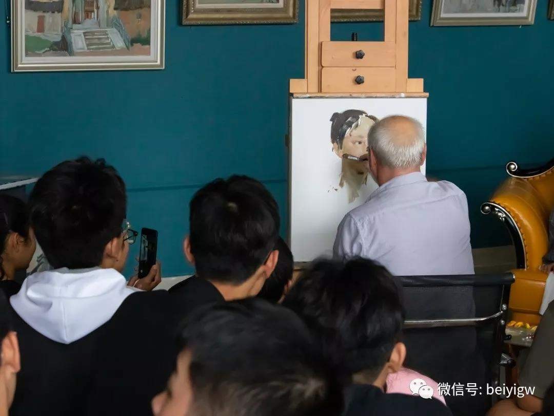 米·顾依达院士表示,创作一幅画最重要的是构图,另外要用心感受模特身上特有的气质,并根据所绘事物着色下笔,善于抓住事物的本质与形象本身。随后,米·顾依达院士现场示范如何构型、铺色、着色。