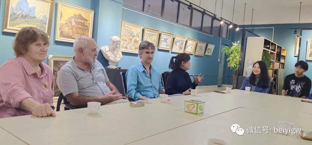 首先,学校胡胜副校长对对米·顾依达院士莅临我校开展学术交流活动表示热烈欢迎和感谢,并简要介绍了此次座谈会的目的及学校的办学情况,也向米·顾依达院士发出了前往涠洲岛指导写生活动的邀请。米·顾依达院士对此行北艺表示十分开心,北海的美丽风光和学校优美的办学环境给他留下了深刻印象。