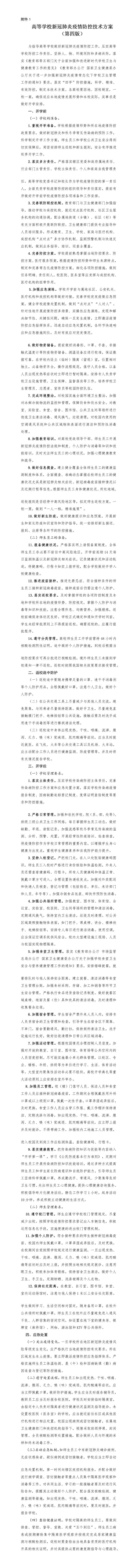 高等学校新冠肺炎疫情防控技术方案(第四版)