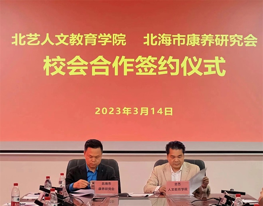 3月14日,政产学研用融合发展研讨会暨签约仪式在我校西校区图书馆五楼会议室顺利举行,学校董事长郑念贻,副校长陶立阳、王斌,学校党委委员刘承初,曲樟乡党委书记李建龙,北海市康养研究会会长王明志,人文教育学院党总支书记、院长熊秀峰,人文教育学院副院长李水亮等出席本次研讨会暨签约仪式。会议由人文教育学院党总支副书记邓欢主持。