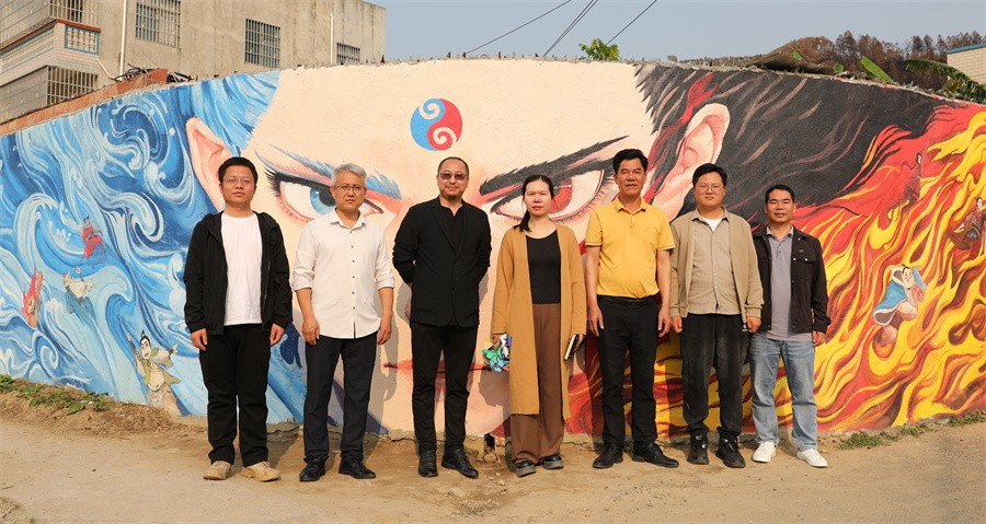 井山村“小洱海”墙绘项目以“红色文化”“农耕文明”“生态旅游”等为主题,30余名师生从调研、设计、实施总计耗时3个月,在五百平方米墙面上创作《红色文化》《渔耕四季》《柿柿如意》等系列作品,将当地特色文化、田园风光转化为可互动的视觉符号,打造“一步一景”的沉浸式乡村文旅体验场所。