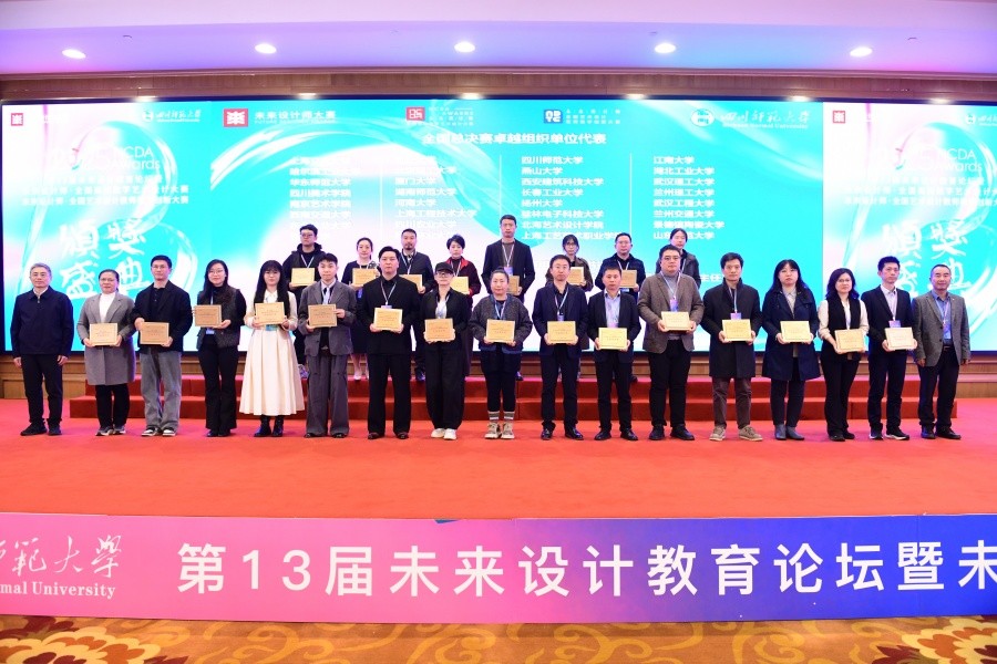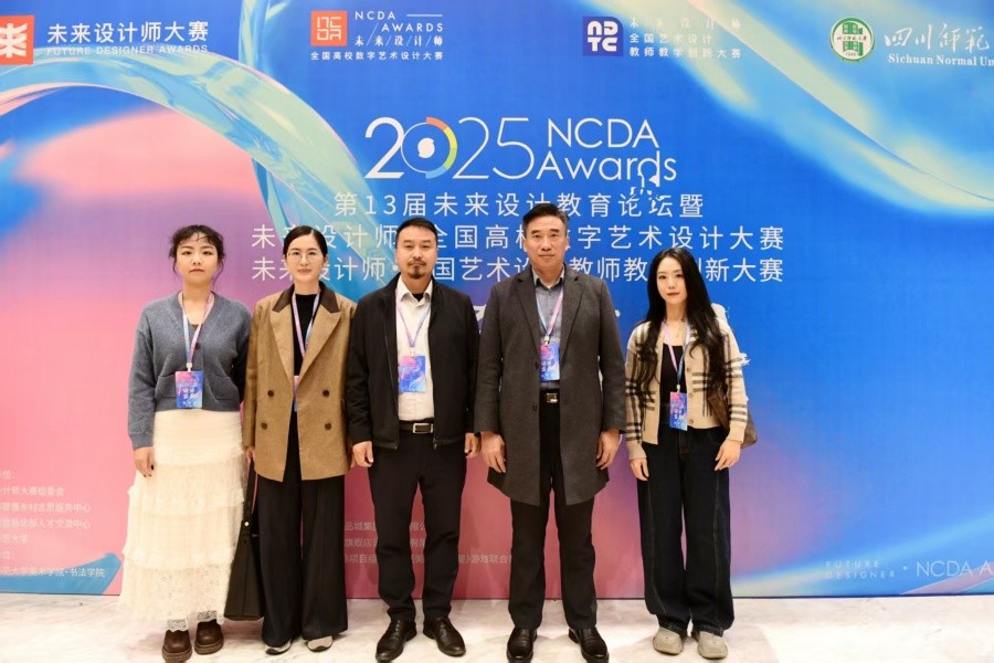 11月23日举行的第13届未来设计教育论坛暨NCDA颁奖典礼上,设计艺术学院再创佳绩:师生团队共摘得全国一等奖3项、二等奖5项、三等奖4项;白建强、陈琛、贾政波等12位教师获评“优秀指导教师”;学校凭借完善的组织工作与突出的参赛成效,荣膺大赛“卓越组织奖”,全方位展现了学校在艺术设计教育与教学创新领域的综合实力。