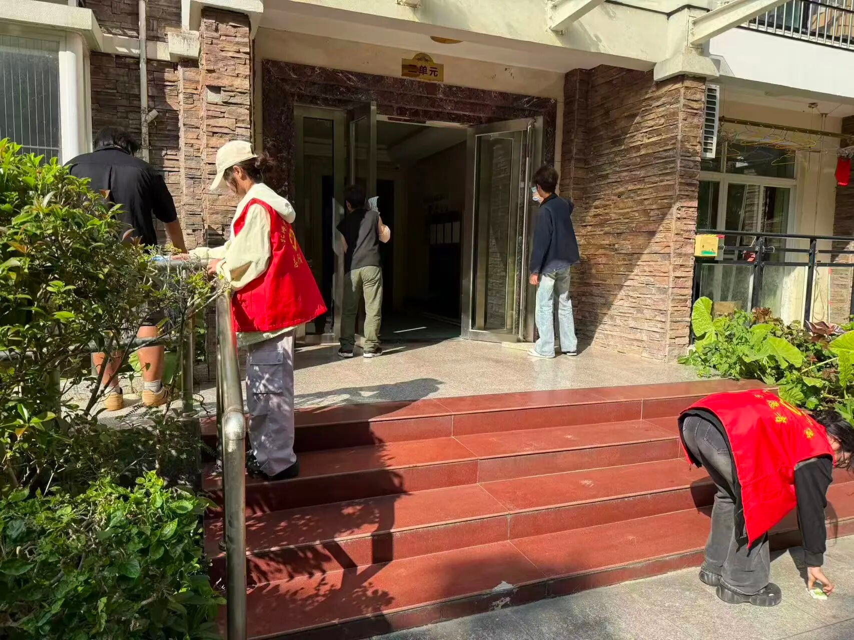 社区志愿服务环节中,志愿者分组开展公共区域环境整治行动。志愿者们携带工具,对小区角落堆积的杂物、散落垃圾进行全面清理,还手持抹布、清洁剂对小区公共设施进行擦拭清洁,有效改善公共环境卫生,提升便民设施使用体验,用实际行动为社区注入温暖活力。