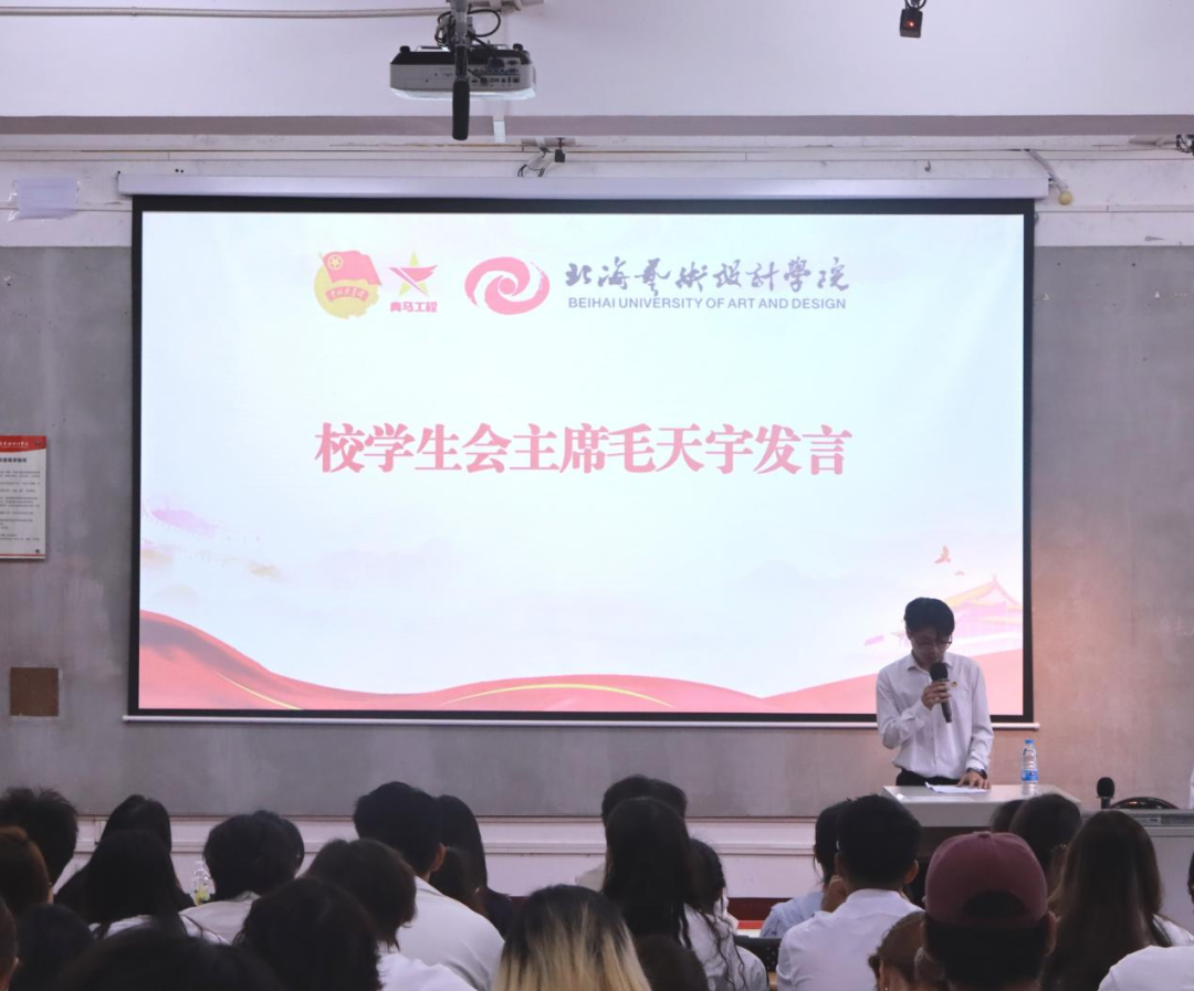 校学生会执行主席毛天宇进行了总结发言,他希望大家能保持对学习的热情,提升综合素质,共同协作,勇于担当,敢于面对挑战困难。